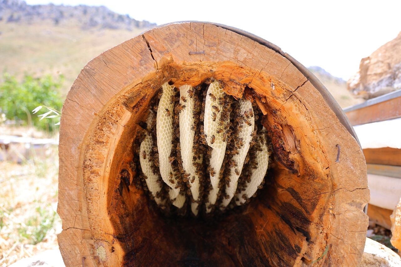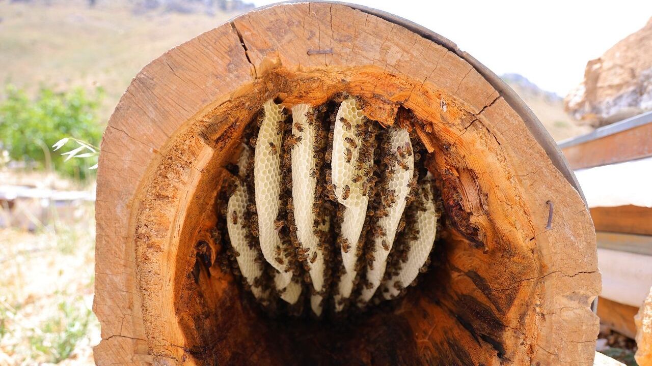 Endemik bitkilerden beslenen arılar, kütüklerin içinde altın sarısı bal peteği oluşturuyor.