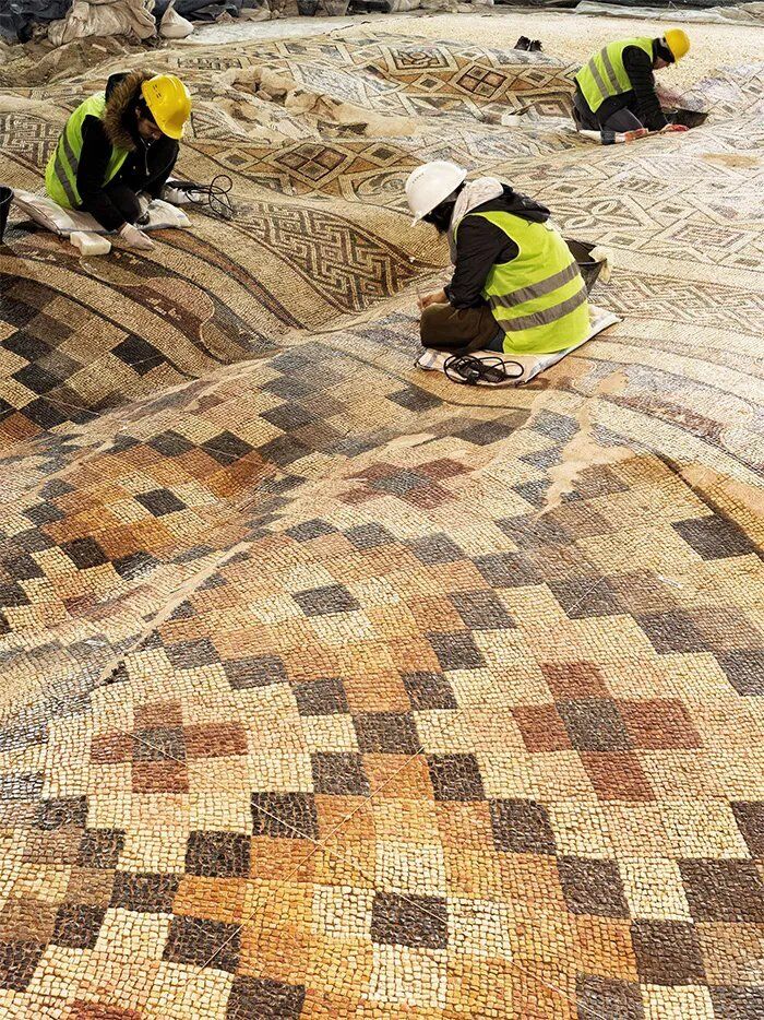 2. Türkiye'nin Antakya kentinde bulunan bu Roma mozaiği o kadar iyi yapılmış ki, depremin yarattığı dalga etkisini bozmadan desenini koruyor.