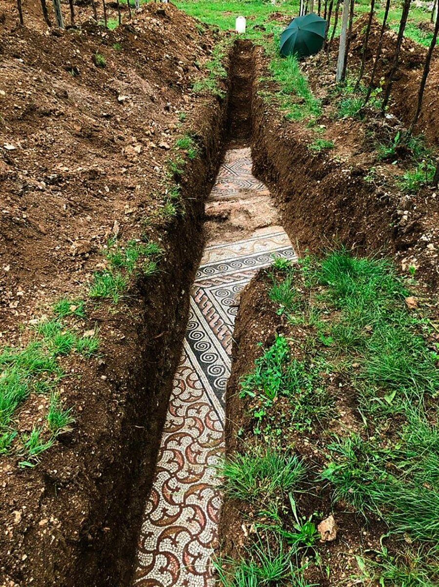 4. İtalya'daki bir üzüm bağının altında bulunan Roma mozaiği