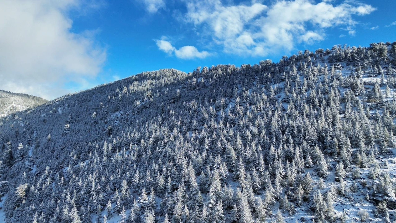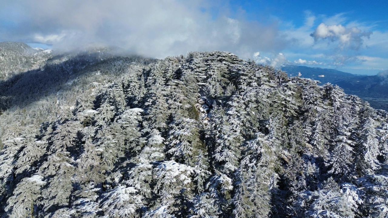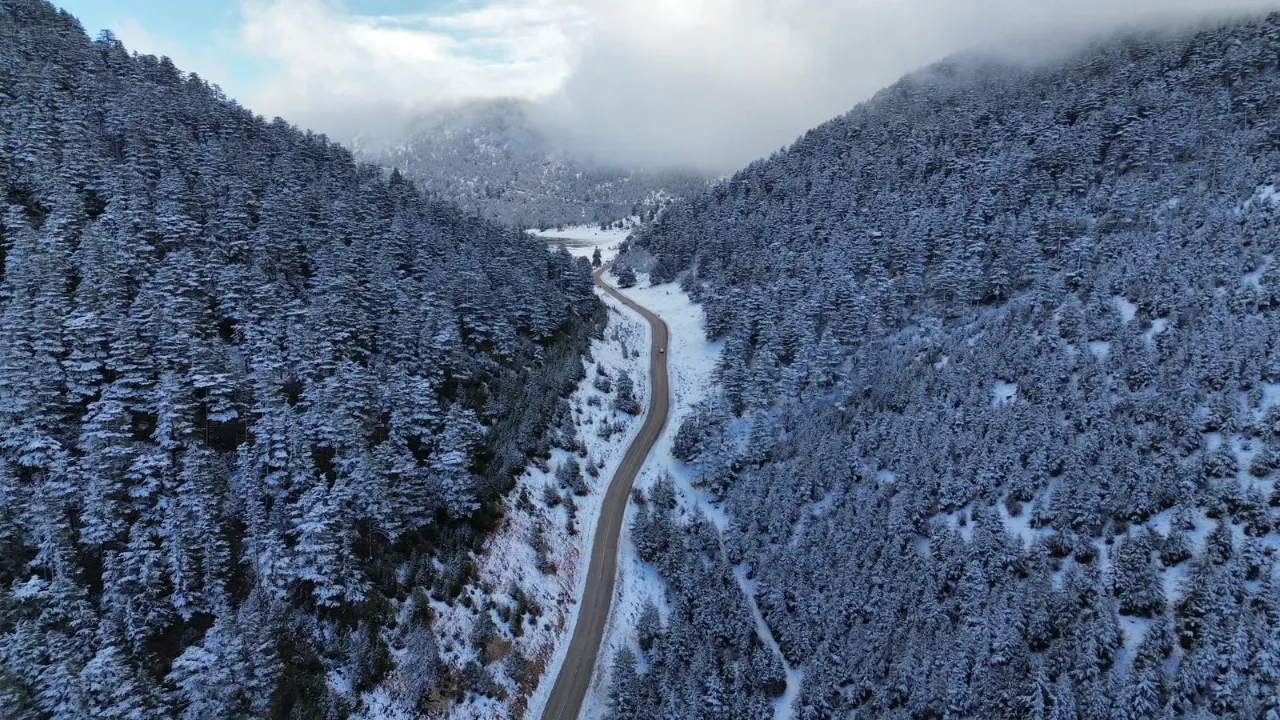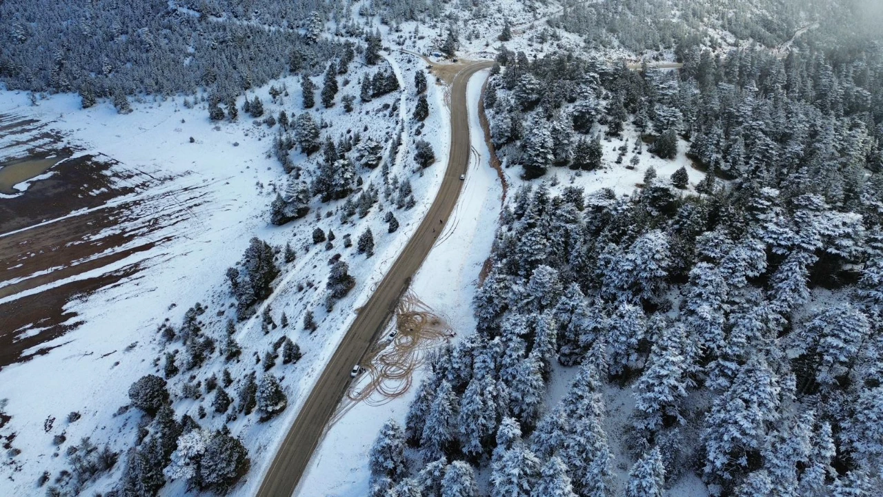 Antalya’nın Kaş ilçesinde kış mevsimi etkisini gösterdi. İlçeye bağlı Gömbe Yaylası ve 1560 rakımlı Kuruova Beli kar yağışı sonrası beyaza büründü. Ormanlık alanlar ve kıvrılarak uzanan yollar, karla kaplanarak kartpostallık görüntüler oluşturdu. Kaş’ın yaz aylarındaki deniz, kum ve güneş manzarasının yerini, kışın doğanın sakin ve beyaz yüzü aldı. Kar manzarası drone ile havadan görüntülenirken, bölge doğal güzelliğiyle doğaseverleri cezbetti. Kent merkezine yaklaşık 65 kilometre uzaklıkta yer alan yayla, kış aylarında da ziyaretçilere farklı bir atmosfer sunuyor.