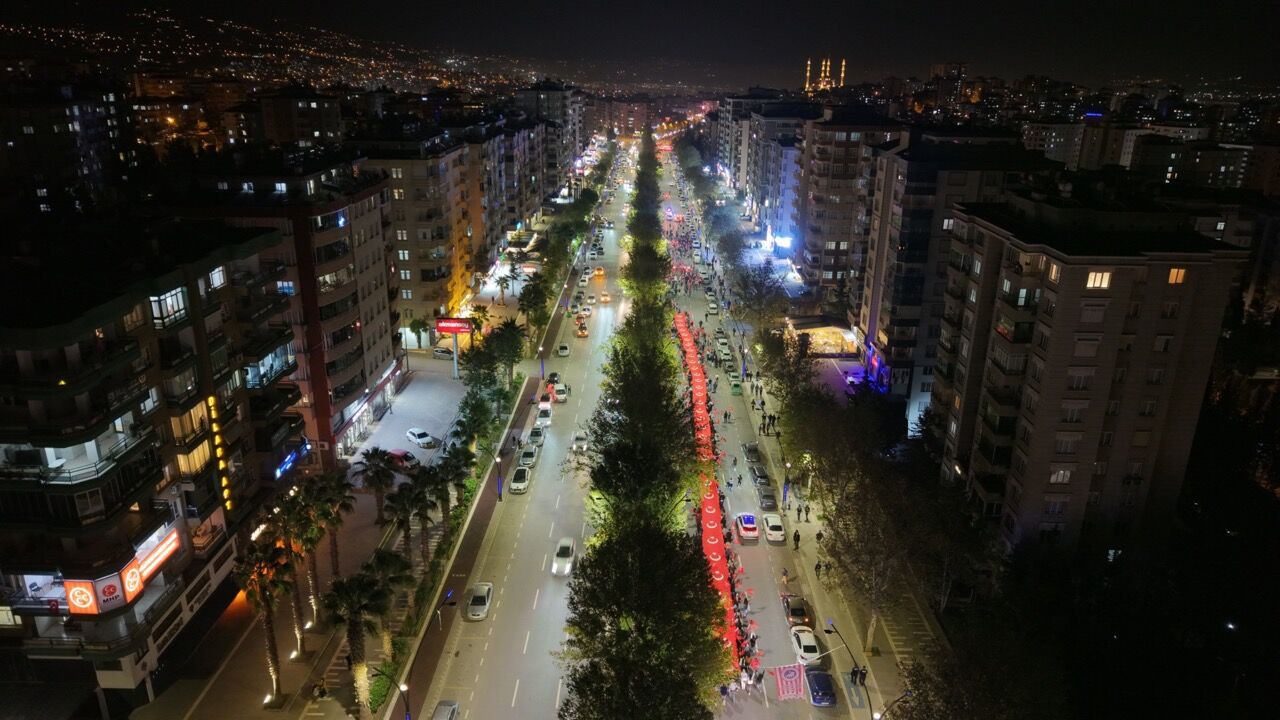 Cumhuriyet’in 102. yılı dolayısıyla Kahramanmaraş’ta düzenlenen yürüyüş, binlerce kişinin katılımıyla büyük bir coşkuya sahne oldu. Onikişubat Parkı’ndan başlayan yürüyüşte Türk bayrakları, meşaleler ve marşlar eşliğinde Necip Fazıl Kısakürek Kültür Merkezi’ne kadar yüründü. Protokol üyeleri ve vatandaşlar omuz omuza yürürken, kent adeta kırmızı-beyaza boyandı. Balkonlardan ve yol kenarlarından destek veren halk, yürüyüşe coşkuyla eşlik etti.