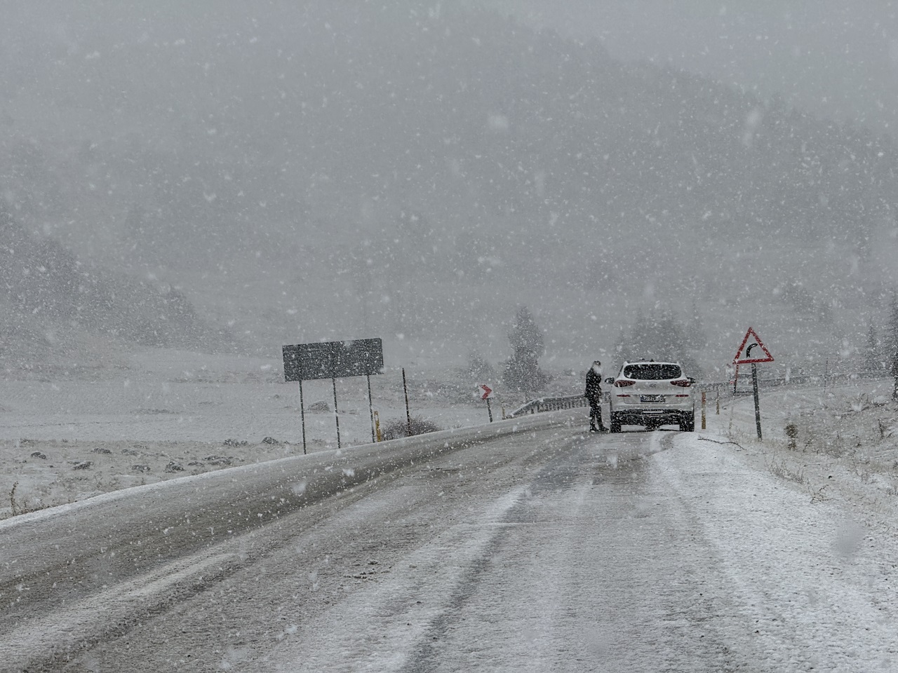 Püren Geçidi'nde kar yağışı sonrası beyaz örtü etkisini gösterdi.