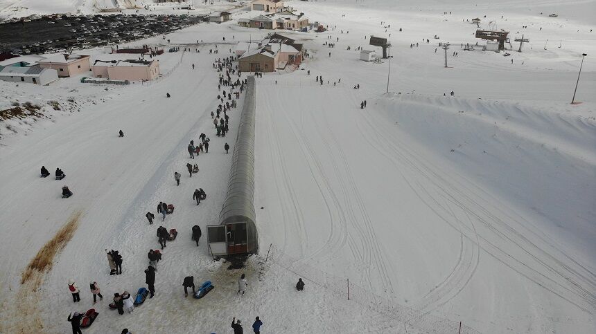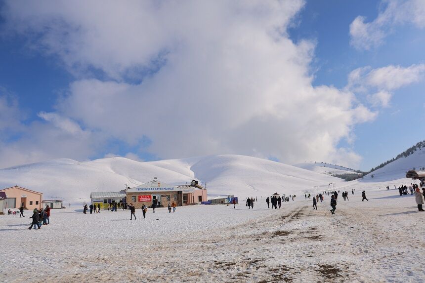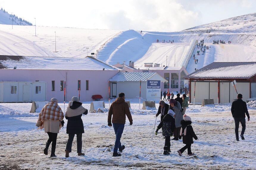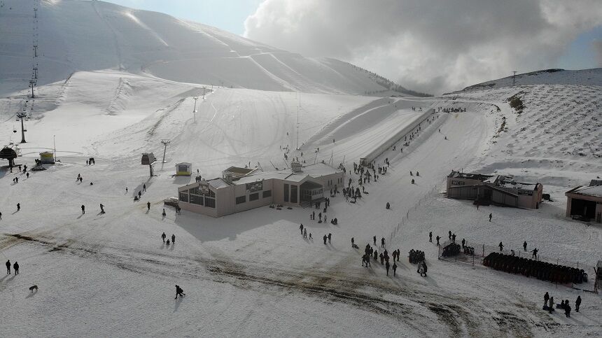 Kahramanmaraş'ta etkili olan kar yağışının ardından, vatandaşlar Ahır Dağı'ndaki kayak merkezine büyük ilgi gösterdi.