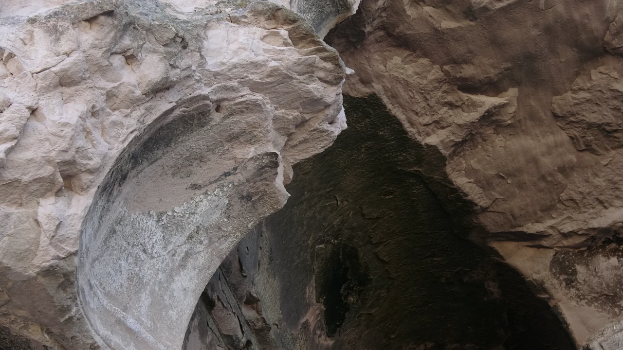 Yer altı şehirlerinden birinin girişinde, doğal kaya oluşumları dikkat çekiyor.