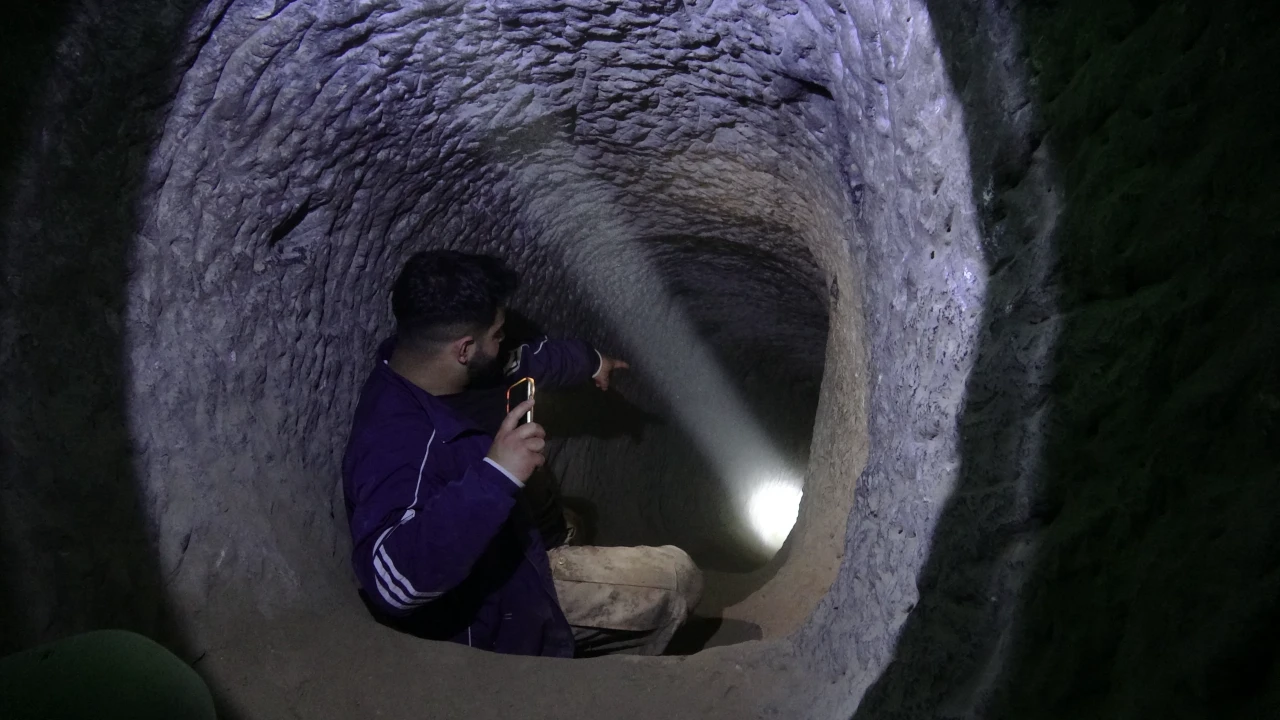 Mahalleli Kemal Taş, 17 yaşında girdiği yer altı şehrini yeniden anlatıyor.