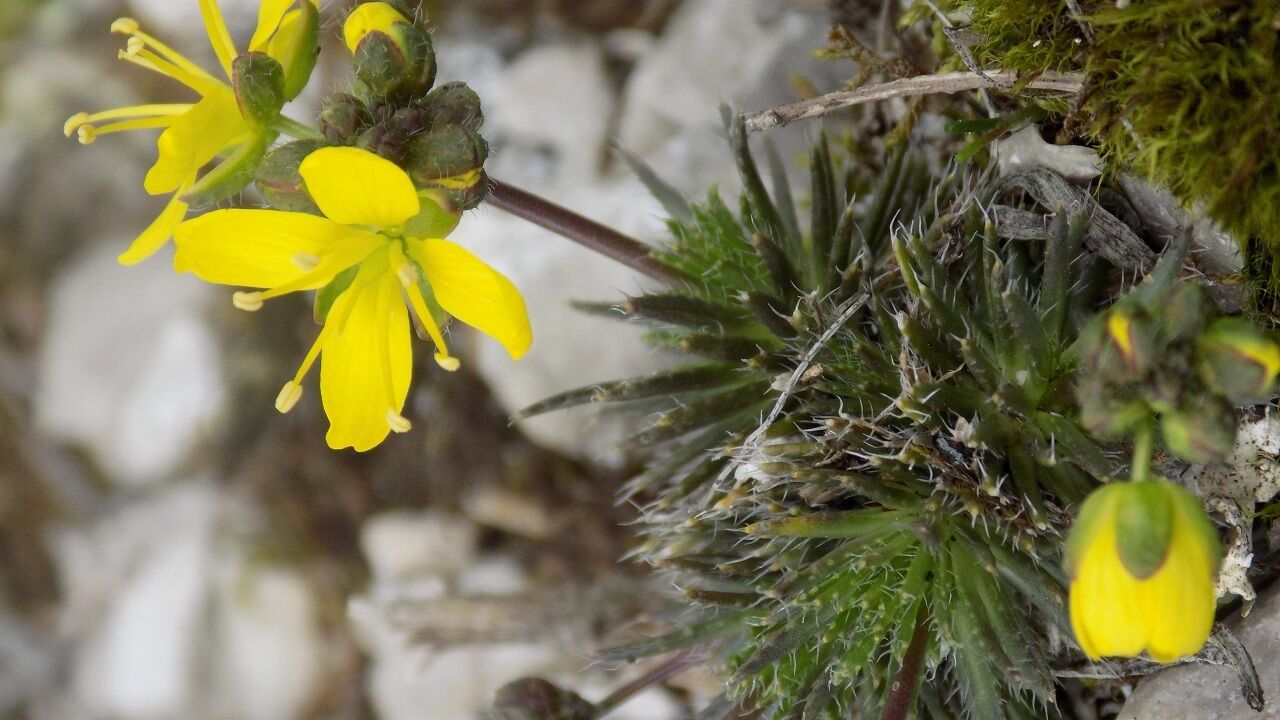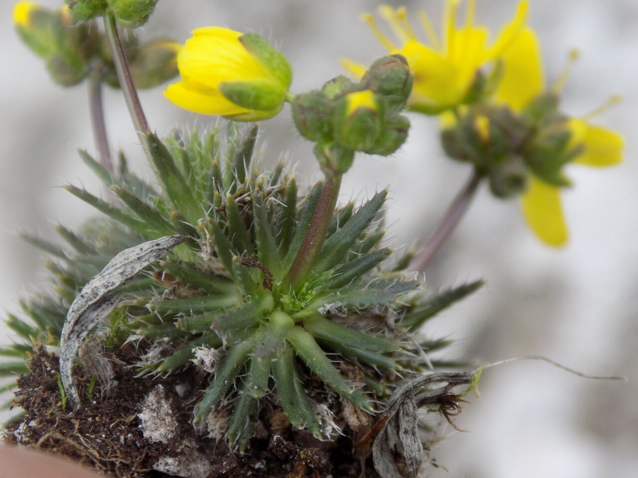 Tüylü kekreçiçeği bahar aylarında cüce görünümlü bitki üzerinde altın sarısı çiçekler açıyor.