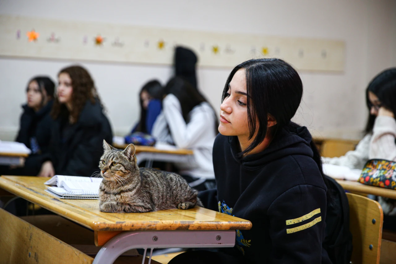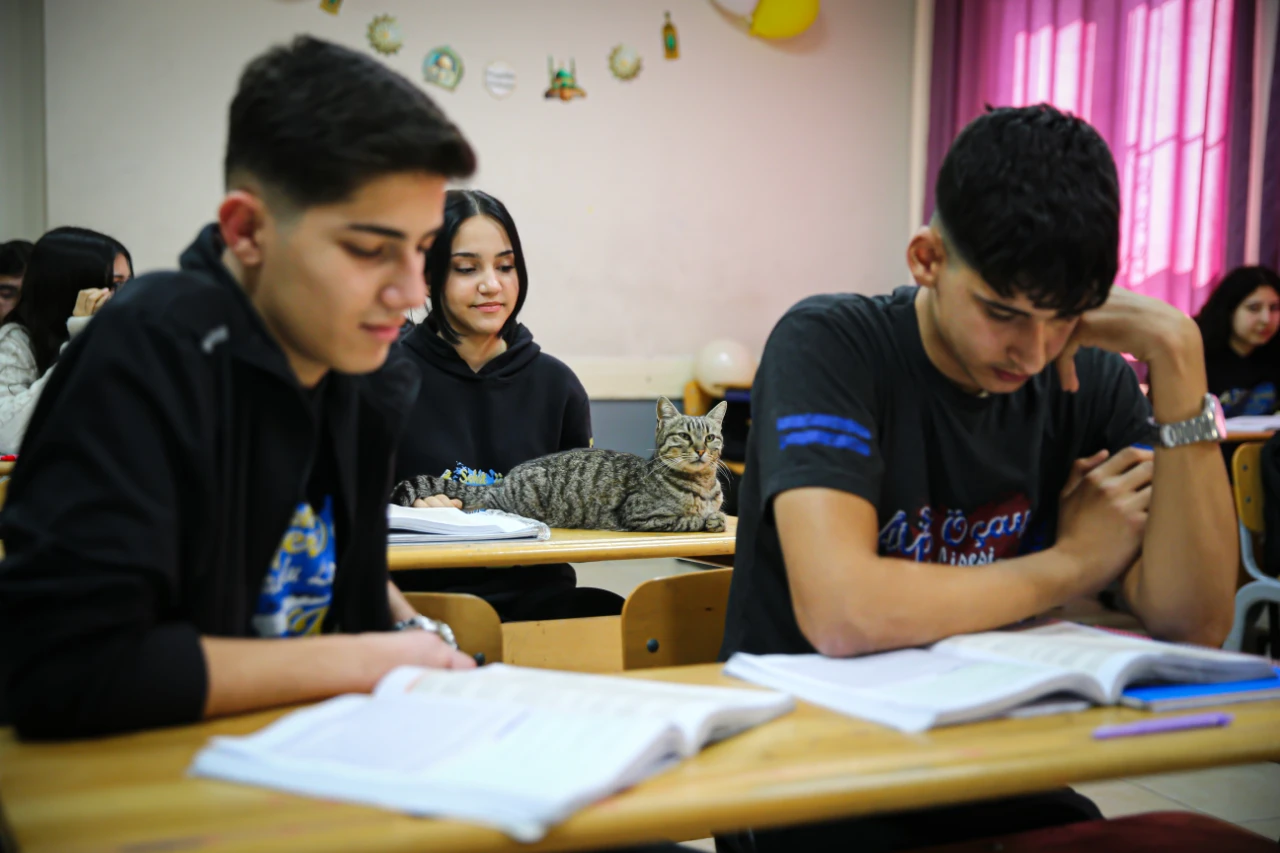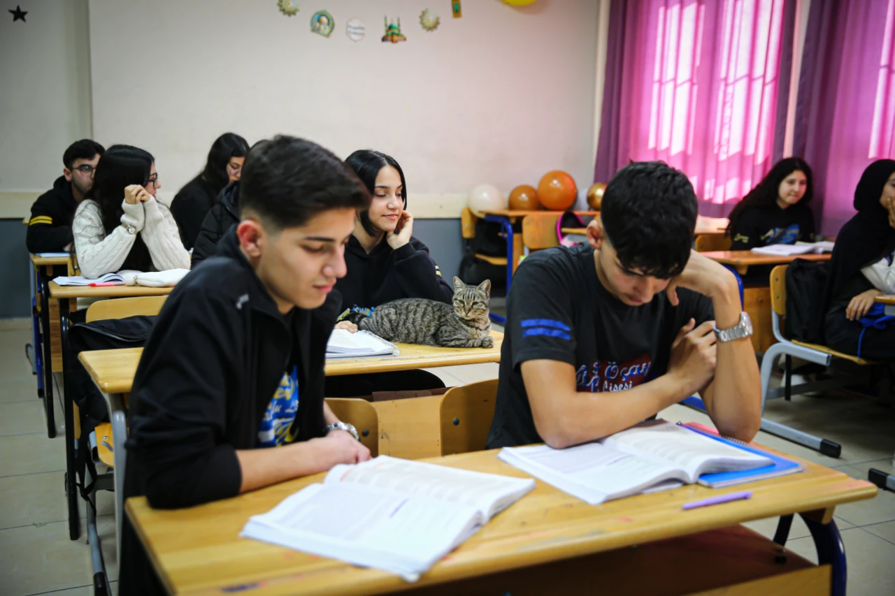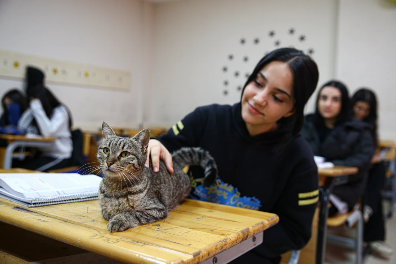 Adana’nın Seyhan ilçesindeki Şehit Alper Öçay Anadolu Lisesi’nde yaşayan “Pakize” adlı kedi, okulun en sevilen üyelerinden biri haline geldi.