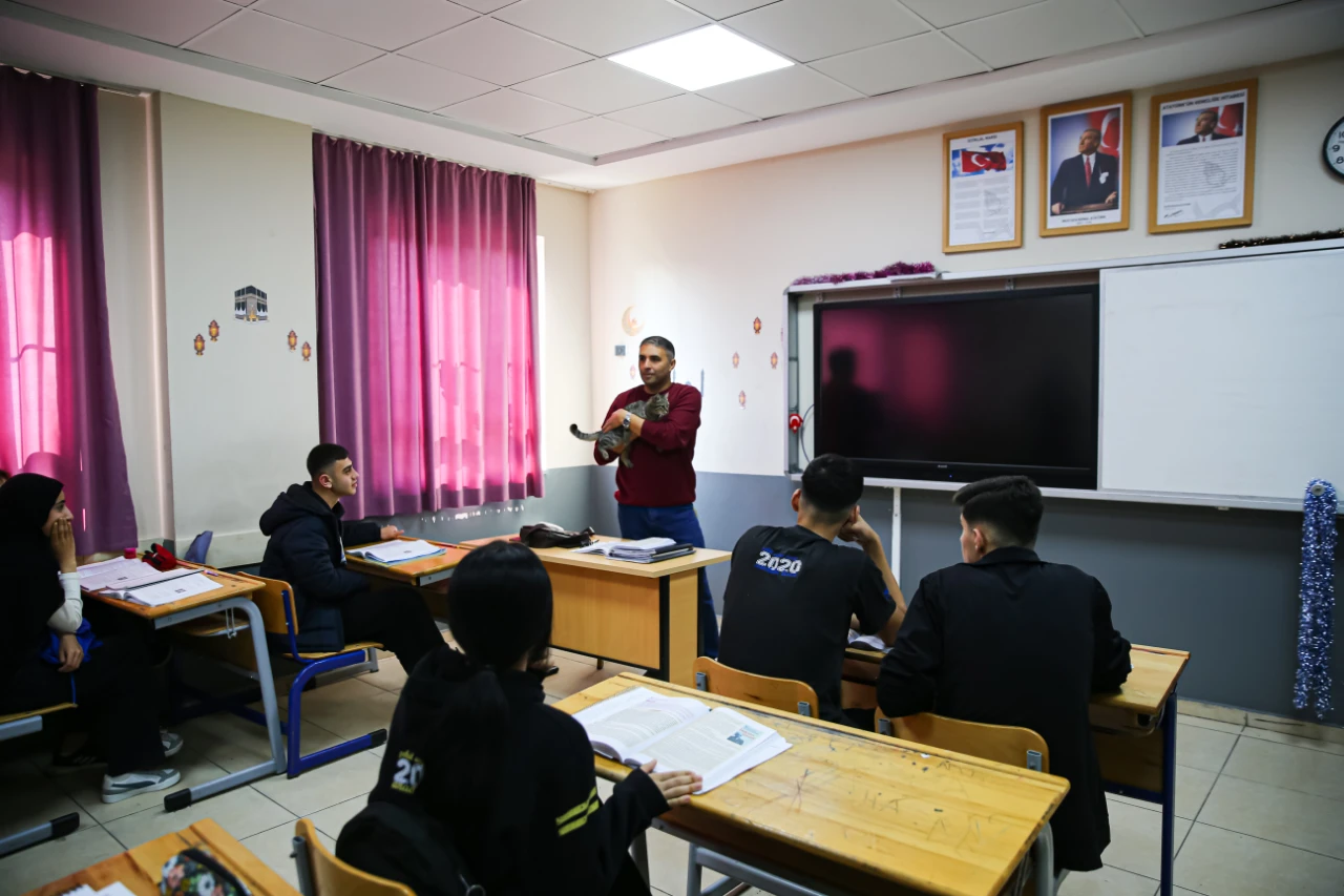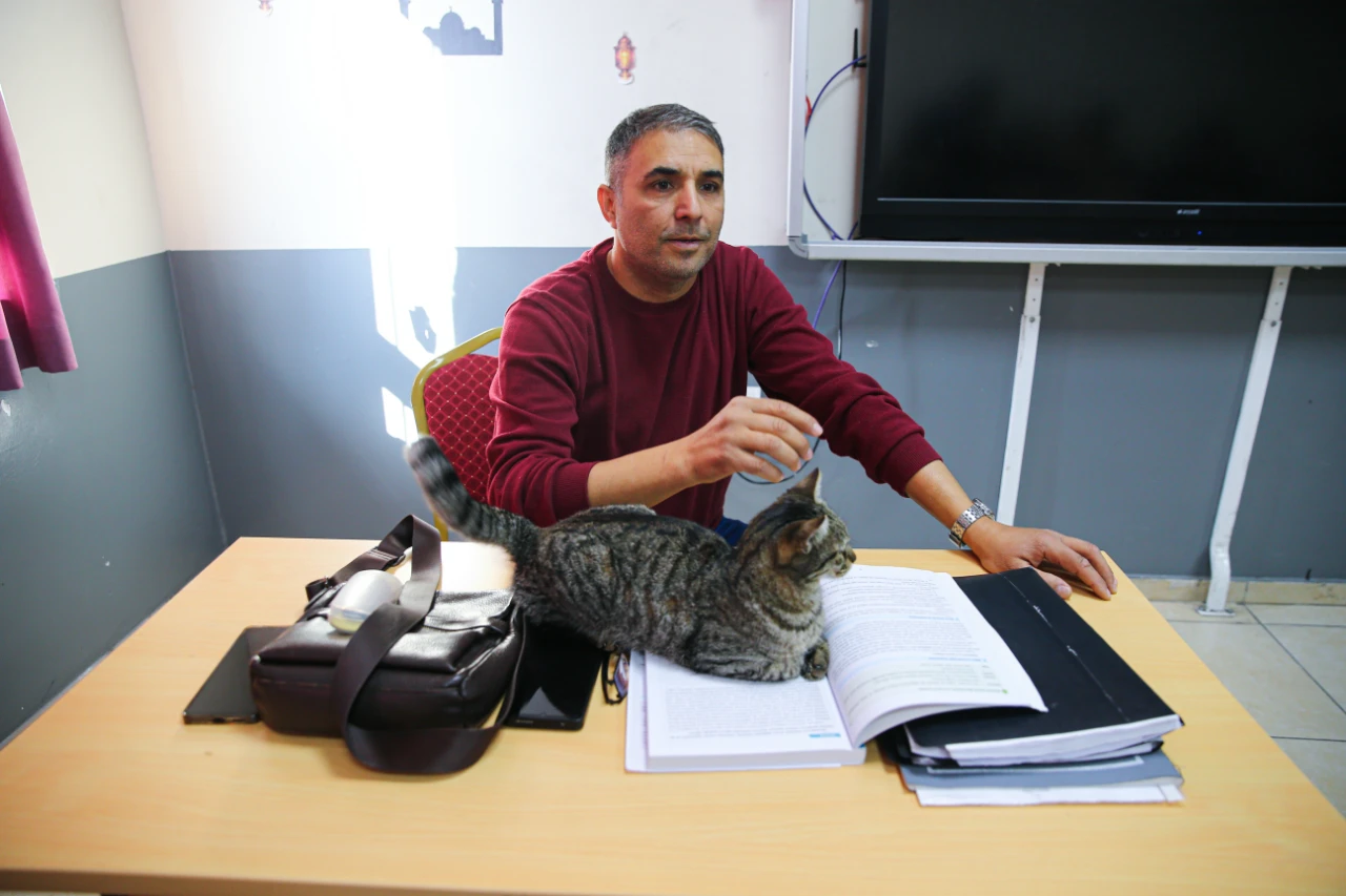 Türk dili ve edebiyatı öğretmeni Halil İbrahim Arslanhan, okula sığınan kediye ilk mamayı veren isimlerden biri oldu.