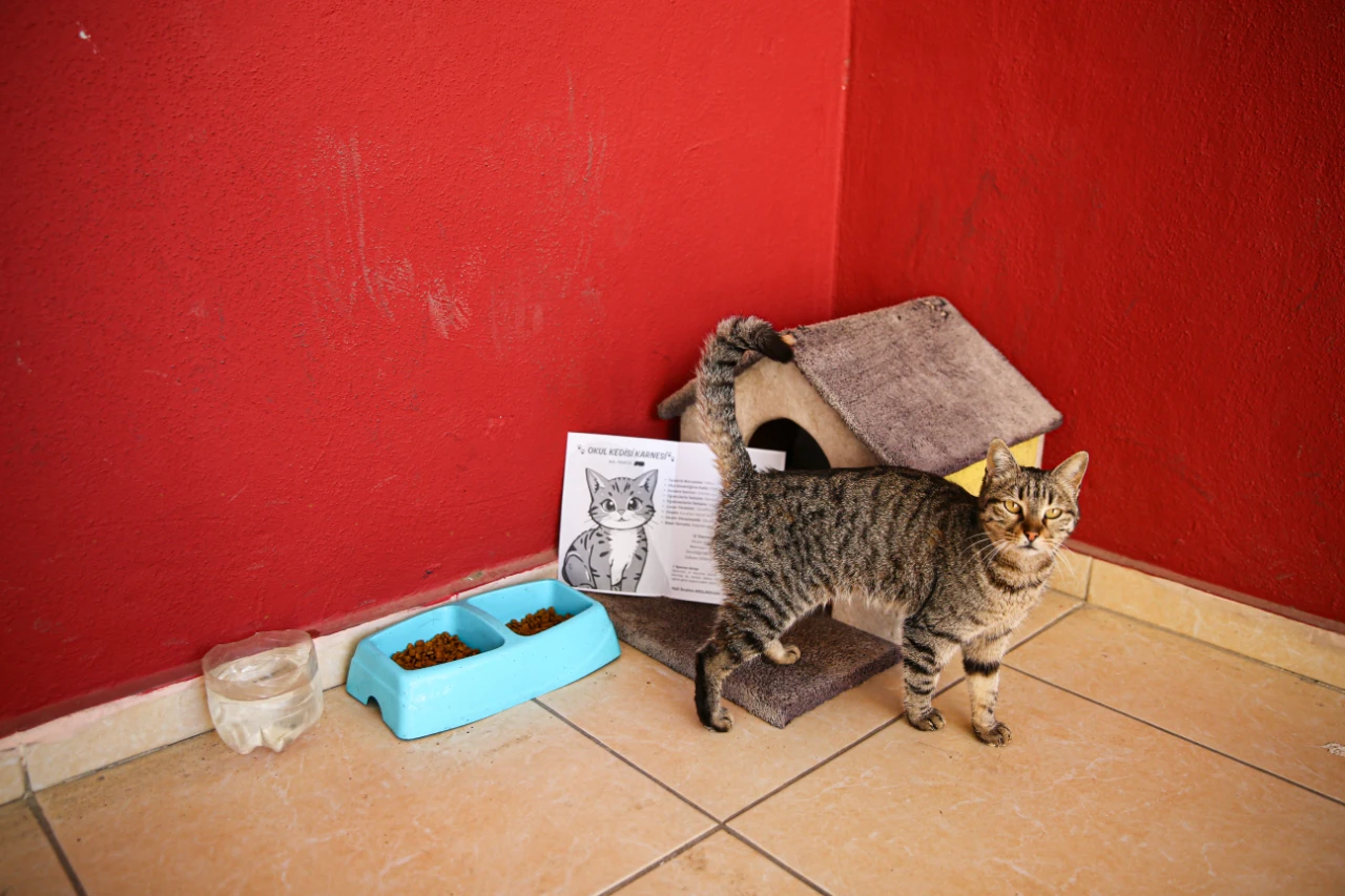 Veteriner kliniğine götürülerek aşıları yapılan Pakize için okulun girişine öğrencilerle birlikte bir barınak hazırlandı.