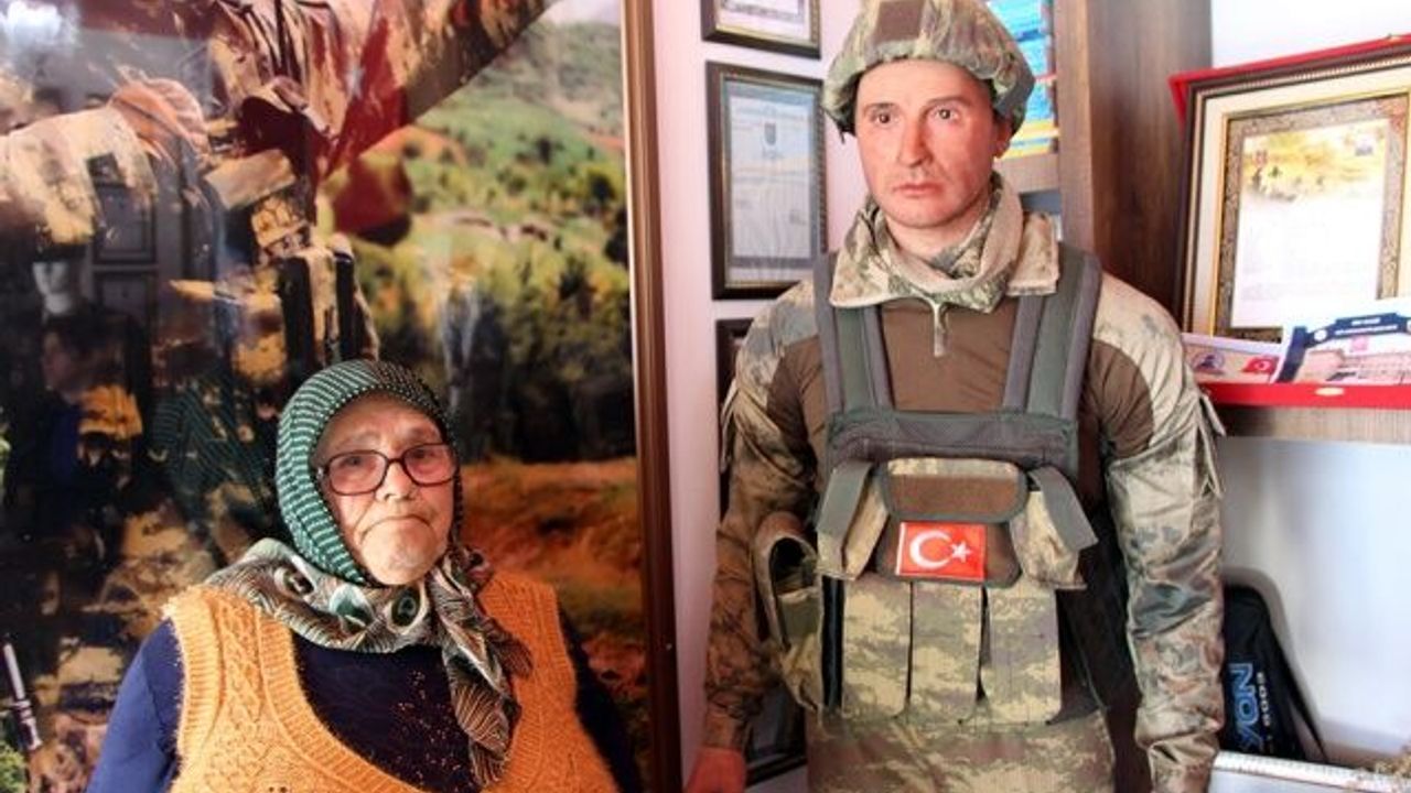 ŞEHİT OĞLUNUN HASRETİNİ BALMUMU HEYKELİ İLE GİDERMEYE ÇALIŞIYOR