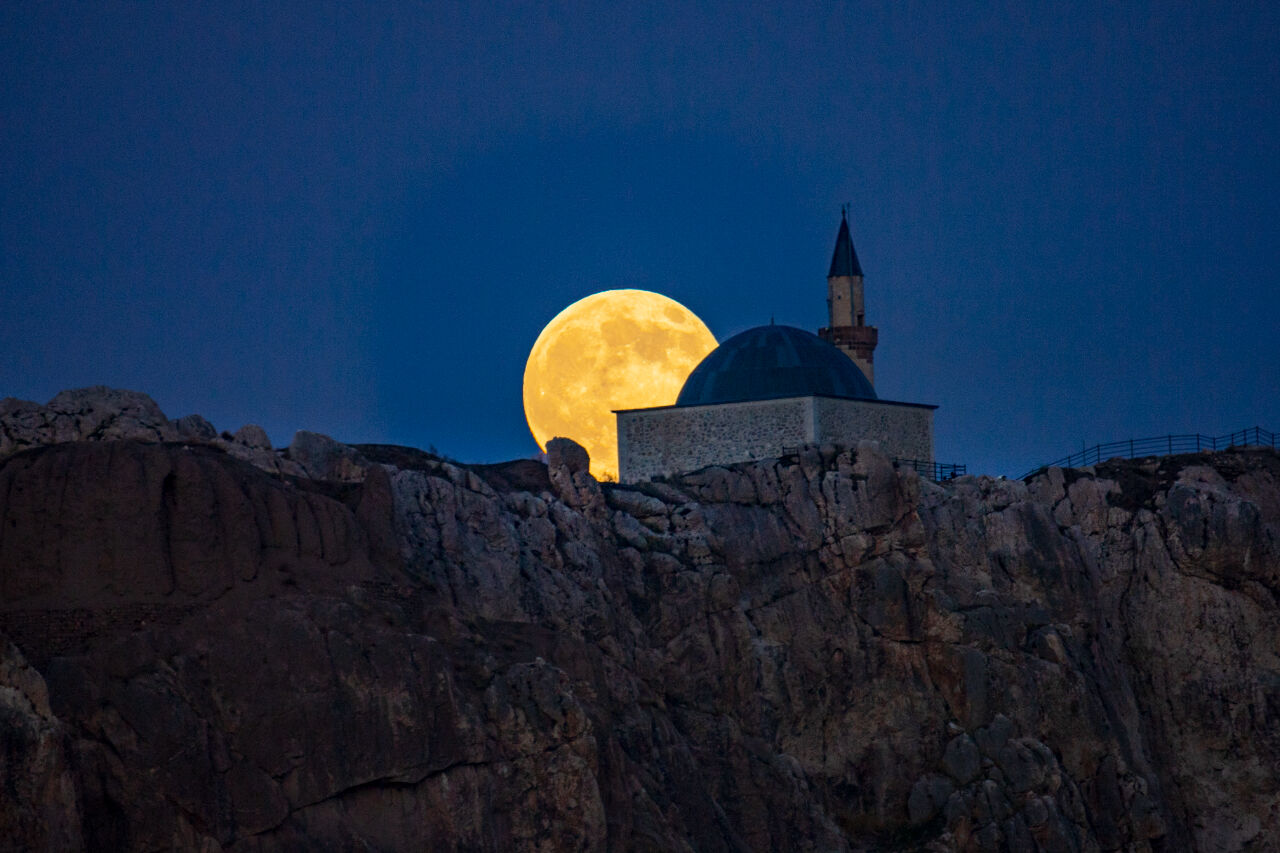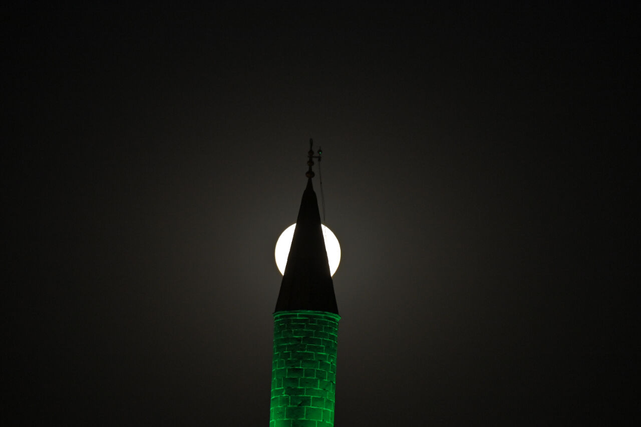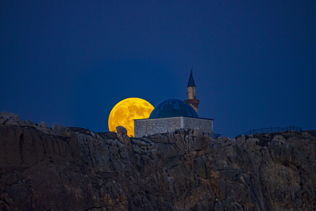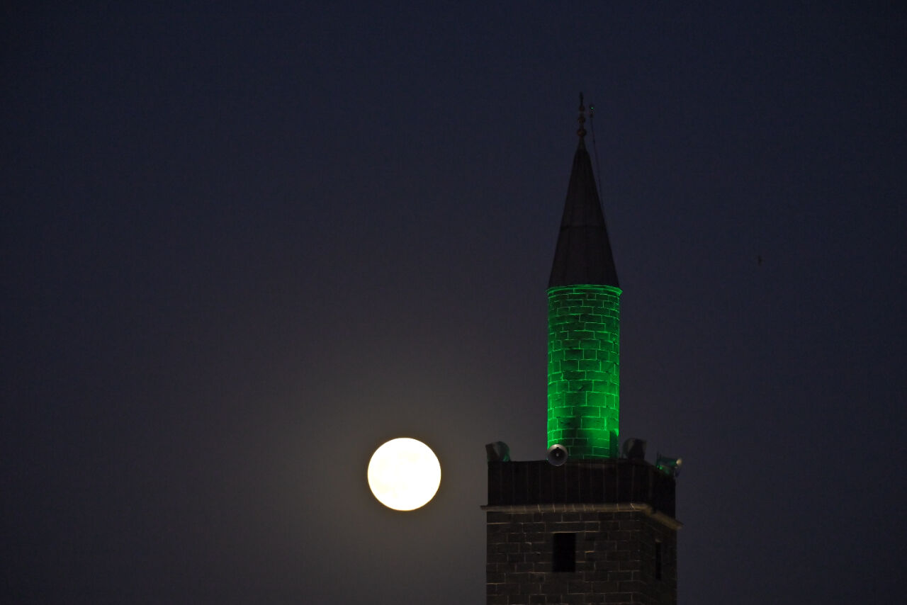 Tarihi siluetlerin arasında beliren dev dolunay…