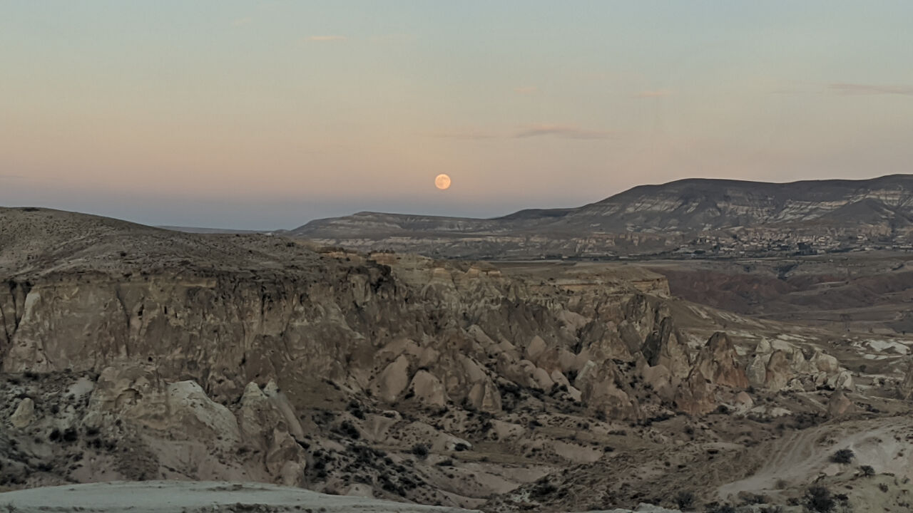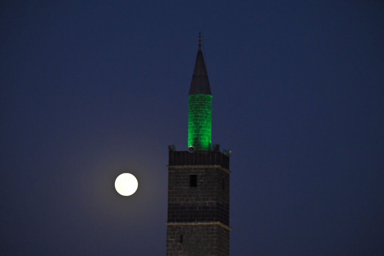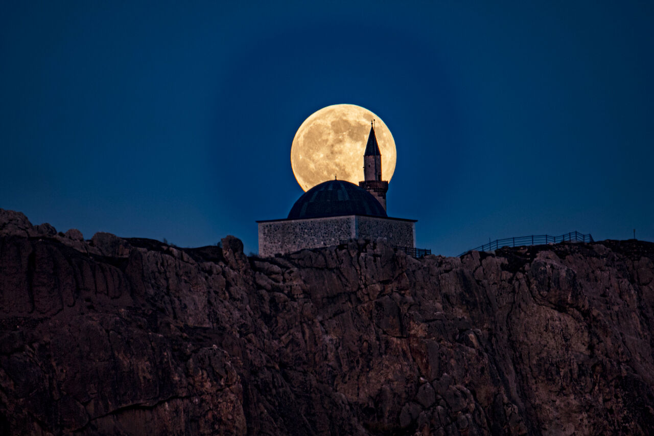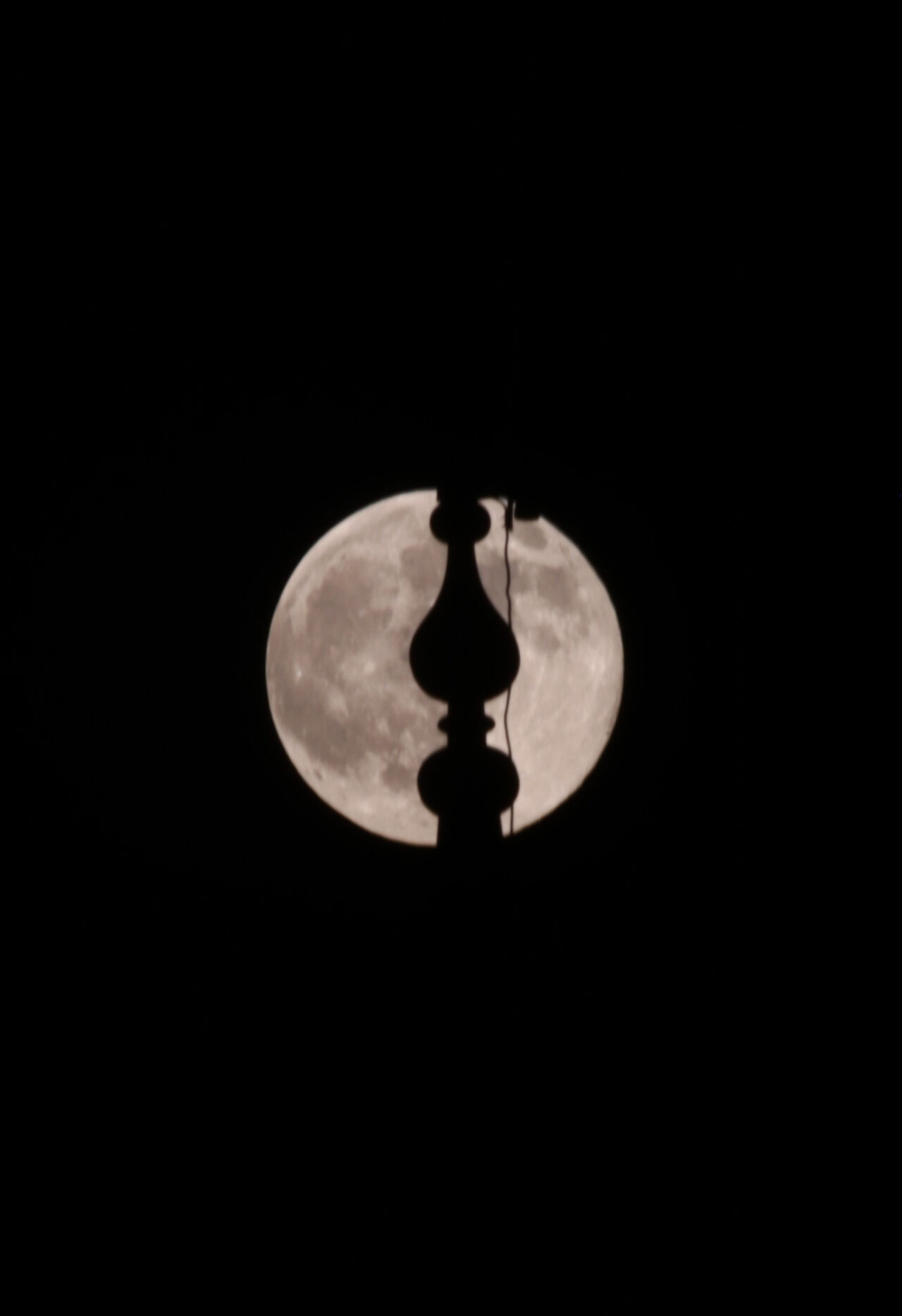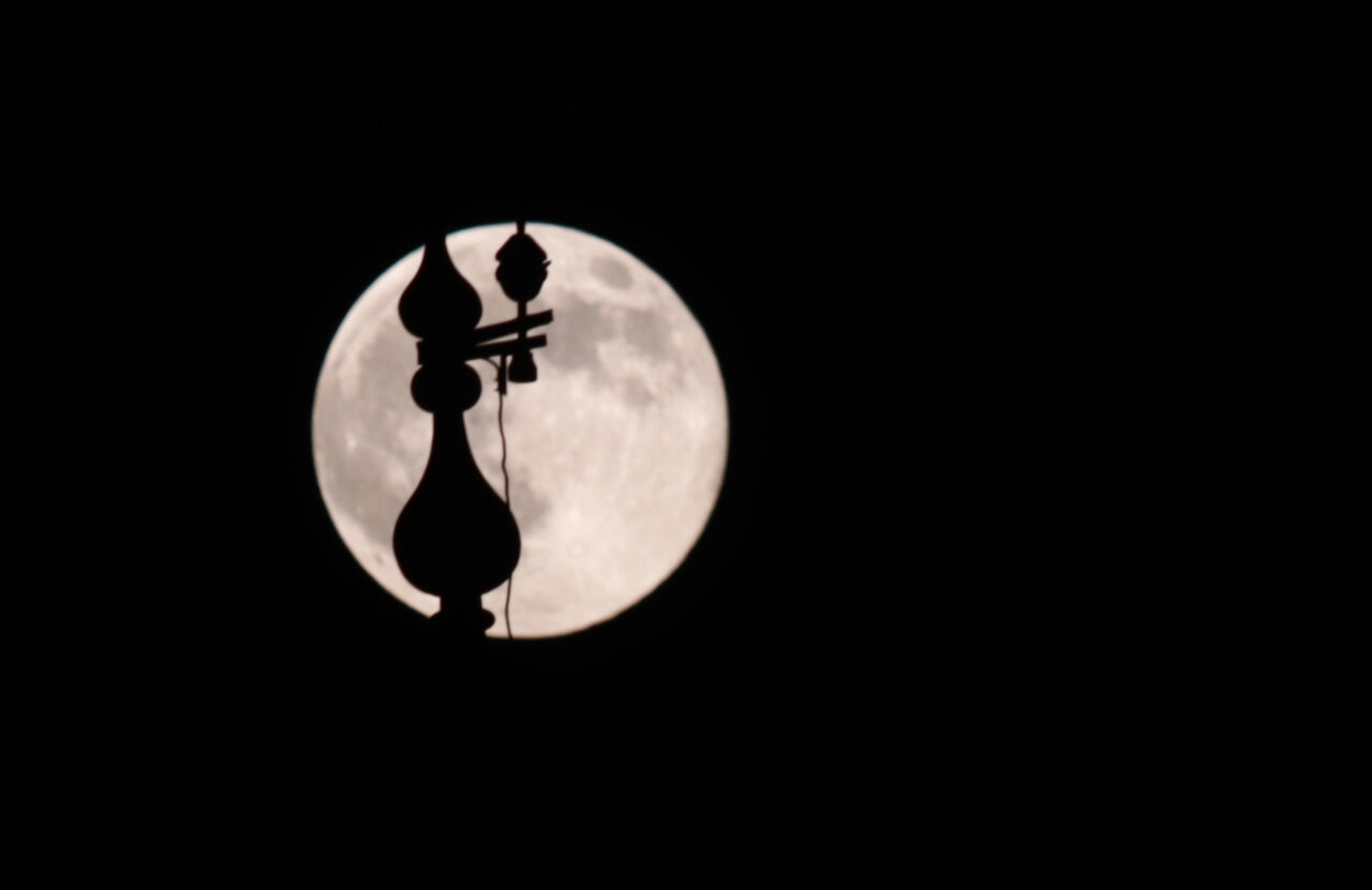 Tarihi siluetlerin arasında beliren dev dolunay…