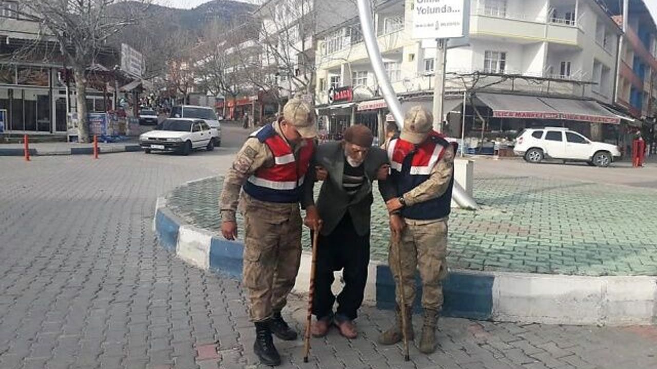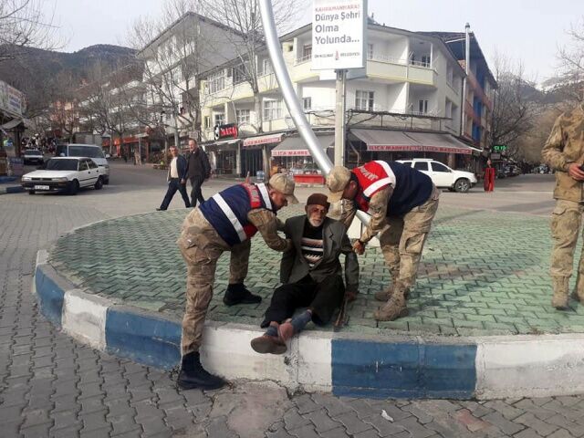YÜRÜMEKTE ZORLANAN YAŞLI ADAMIN IMDADINA JANDARMA YETIŞTI