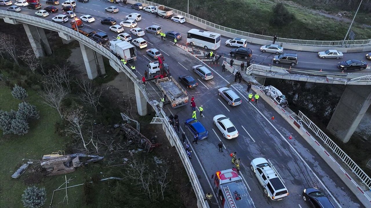 TIR Viyadükten Düştü, Araç Bariyerlerde Asılı Kaldı