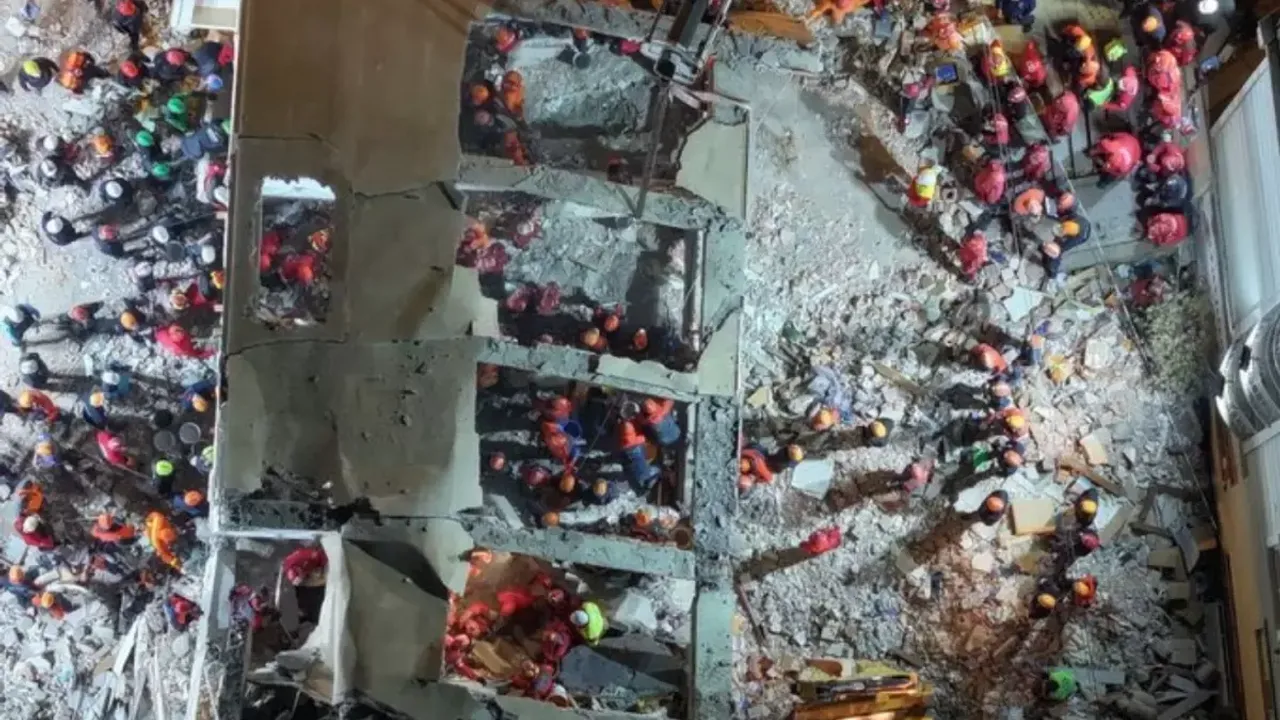 Kurtarma ekipleri, beton yığınları arasında ses alabilmek için dinleme cihazlarıyla tarama yaparken, bölgedeki sessizlik umutla bekleniyor.
