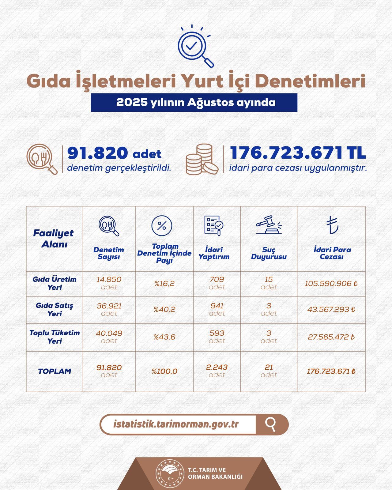 Denetimler sonucunda, mevzuata aykırılık tespit edilen işletmelere 176 milyon 723 bin 671 TL tutarında idari para cezası kesildi. Bunun yanı sıra, 2 bin 243 idari yaptırım uygulandı ve 21 kişi hakkında suç duyurusunda bulunuldu.