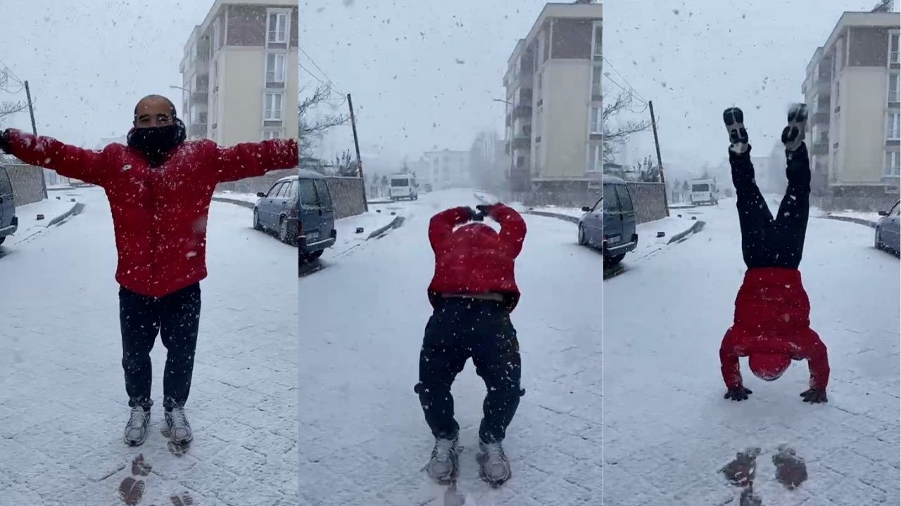 Osman Ismak’ın karda yaptığı geri taklalar, izleyenler tarafından büyük beğeni topladı. O anlara tanıklık eden vatandaşlar, ilginç gösteriyi cep telefonlarıyla kayda aldı. Görüntüler kısa sürede sosyal medyada da ilgi gördü.