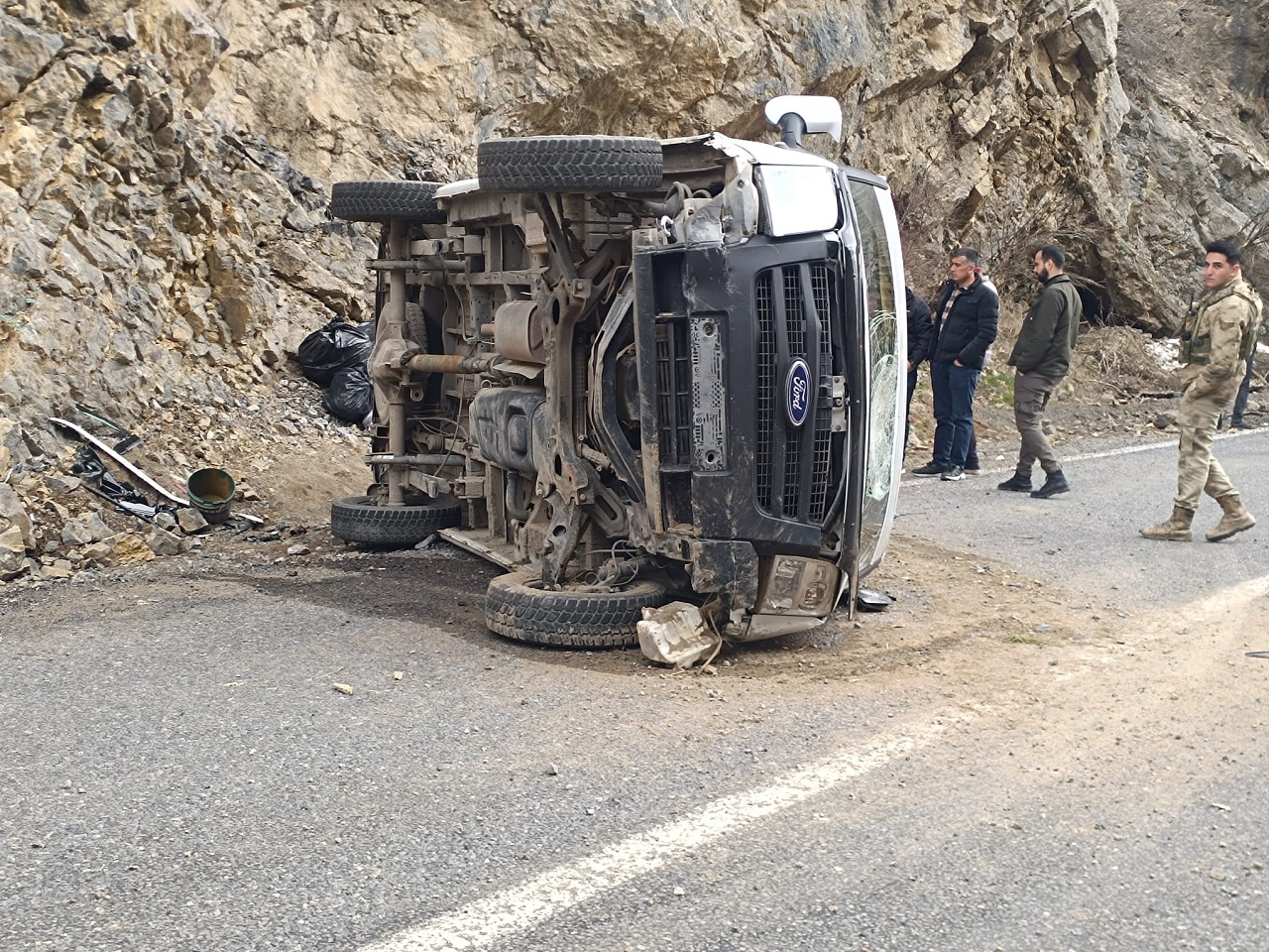 HAKKÂRİ-ÇUKURCA KARA YOLUNDA MİNİBÜS TAKLA ATTI