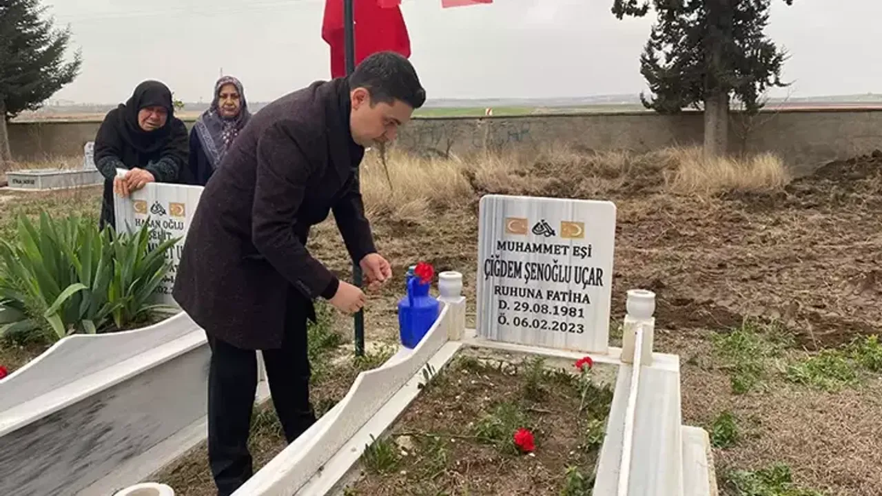 Kaymakam Şahin ile Belediye Başkanı Karaköse, Muhammet Uçar, eşi Çiğdem Şenoğlu Uçar ile çocukları Tuna, Göksu ve ikizi Cansu Uçar'ın mezarlarına kırmızı karanfil bıraktı. Uçar ailesi ile tüm depremde hayatını kaybedenlere dualar edildi. Aynı acıların bir kez daha yaşanmaması temennisinde bulunuldu.