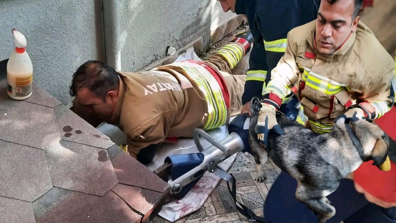 İTFAİYE EKİPLERİ KÖPEĞİ KURTARMAK İÇİN MÜDAHALE ETTİ