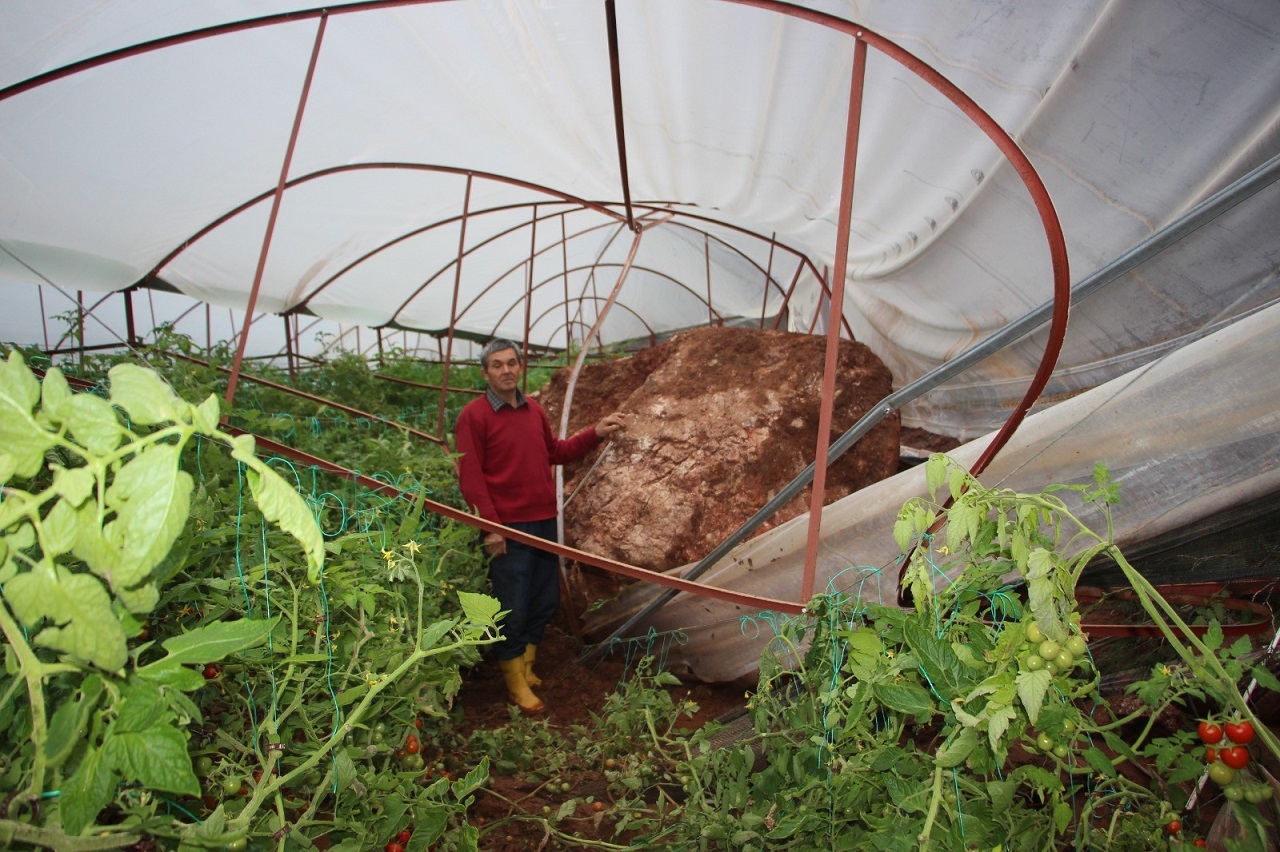 Domates üreticisi Ercan Balcı, serasının üzerine dev bir kaya parçasının düştüğünü belirterek, "Heyelan oldu, seram yerle bir oldu. Zayiat fazla. Kayayı ve toprağı temizlemek tek başıma imkansız. Belediyeden yardım istedim," dedi. Balcı, hafriyat yapıldıktan sonra serasını yeniden kurmayı planladığını söyledi.