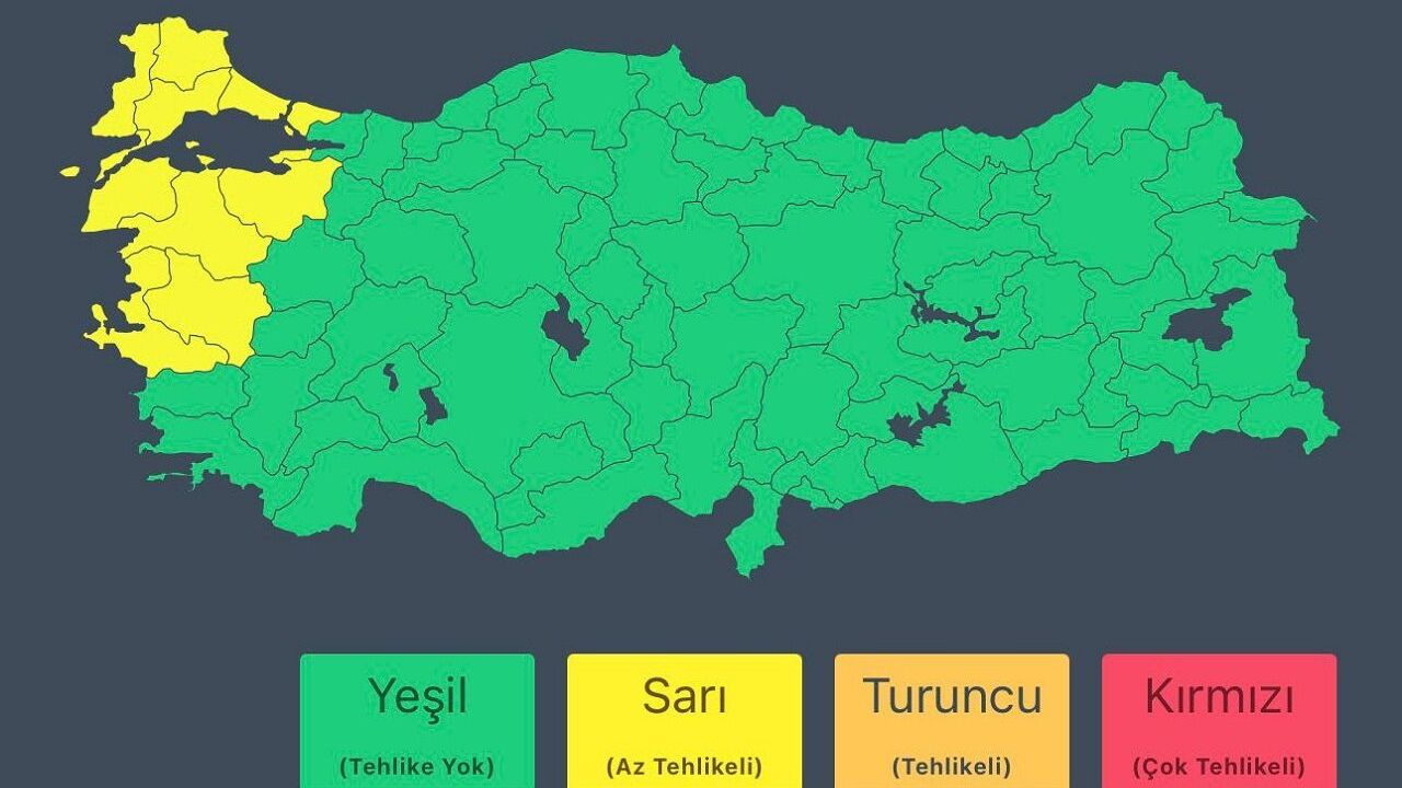 İçişleri Bakanlığı, Meteoroloji Genel Müdürlüğü’nden alınan son verilere dayanarak Marmara ve Ege bölgelerinde yer alan bazı iller için kuvvetli gök gürültülü sağanak yağış ve kısa süreli fırtına uyarısında bulundu. Bakanlık, özellikle sel, su baskını, yıldırım, dolu yağışı, çatı uçması ve ulaşımda aksamalar gibi risklere karşı vatandaşların dikkatli ve tedbirli olmasını istedi.