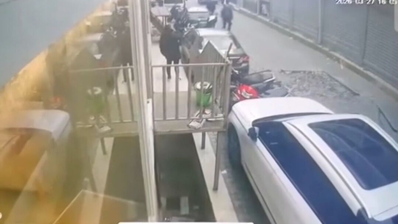 Aydın’ın Kuşadası ilçesinde bir iş merkezinin üçüncü katından düşen pencere, sokaktan geçen vatandaşları paniğe sürükledi. O anlar güvenlik kamerasına yansıdı.