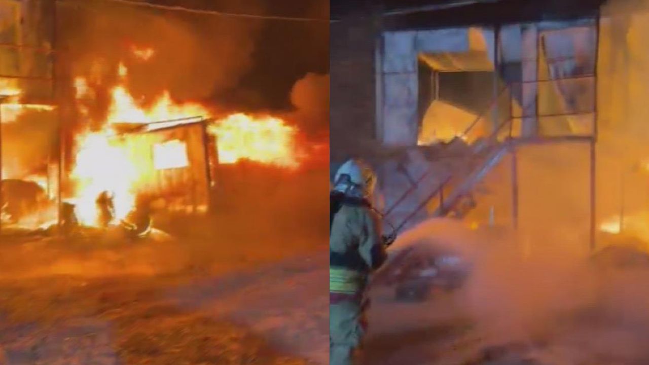 Şantiyede çalışan işçilerin kaldığı konteyner yatakhane alevlere teslim oldu.