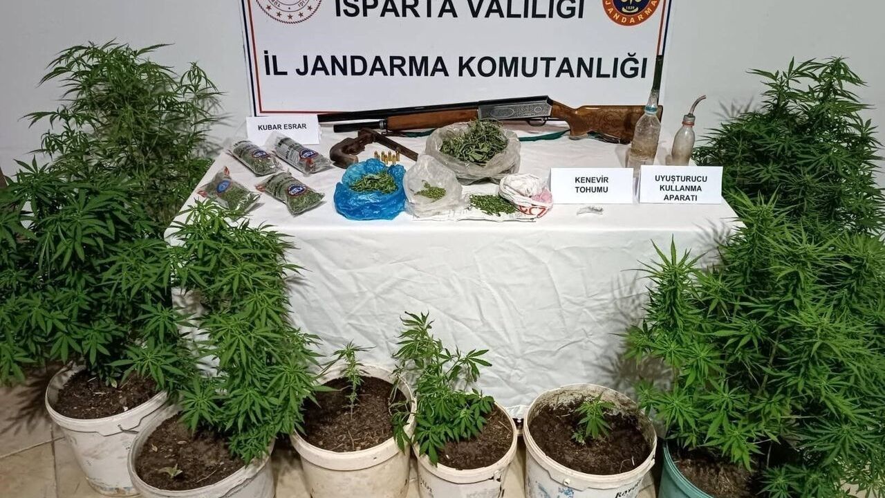 Isparta İl Jandarma Komutanlığı, Yalvaç ilçesinde düzenlediği operasyonda 420 gram kubar esrar, kenevir bitkisi ve ruhsatsız silahlar ele geçirdi. Şüpheli adli kontrolle serbest bırakıldı.