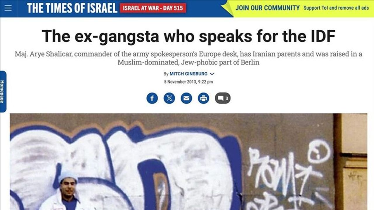 İsrail'in en büyük haber sitelerinden The Times of Israil, ordunun Türkçe sözcülüğünü yapmaya başlayan Shalicar'ın eski bir çete üyesi olduğunu, "İsrail ordusu adına konuşan eski gangster" başlığıyla okuyucularına duyurmuştu.