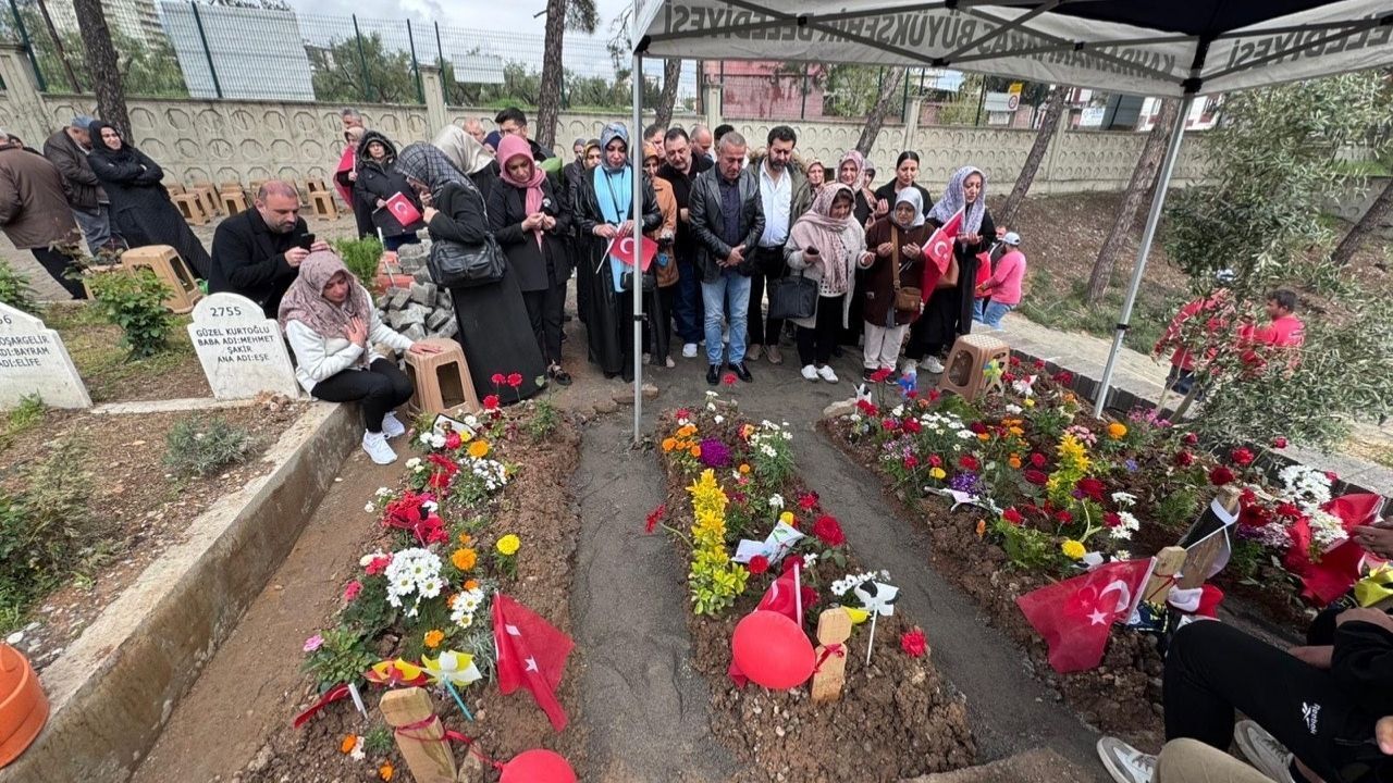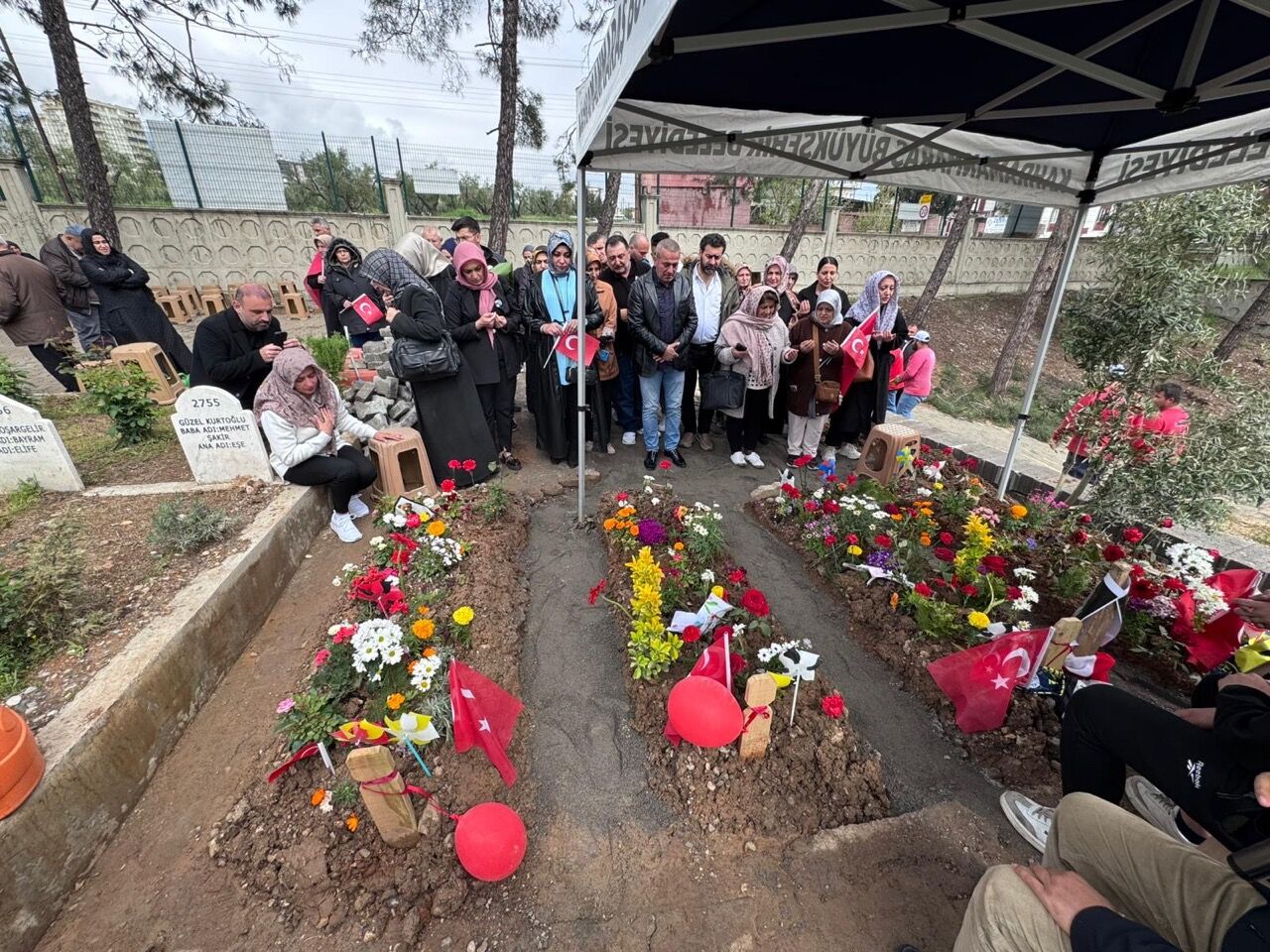Ayser Çalık Ortaokulu’ndaki anma töreninin ardından gönüllü grup, saldırıda hayatını kaybeden öğrencilerin ve öğretmenlerin ebedi istirahatgahı olan Şeyhadil Mezarlığı’na geçti. Burada kabirlerin başına tek tek karanfil bırakan ve Kur’an-ı Kerim okuyarak dua eden grup üyeleri, mezarlık çıkışında ailelerle de kısa süreli görüşmeler yaparak taziyelerini iletti. İstanbul’dan gelen bu heyet, toplumsal dayanışmanın en güzel örneklerinden birini sergileyerek kente veda etti.