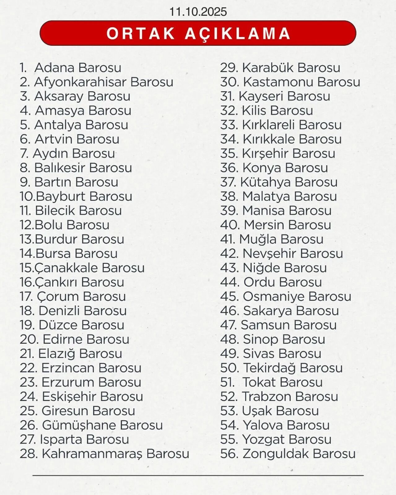 Barolar, terörsüz bir Türkiye’nin yalnızca güvenlik politikaları ile sağlanamayacağını, hukukun üstünlüğü, demokratik düzenin güçlendirilmesi ve barış kültürünün yaygınlaştırılmasıyla mümkün olabileceğini kaydetti. Açıklamada ayrıca, “Gerçek gücünü Anayasa’dan alan bir hukuk devleti, farklılıkları zenginlik, adaleti ise en yüce değer olarak görür” denildi.