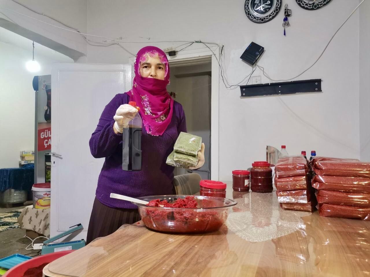 Kahramanmaraş’ın meşhur biberi, isot, salça, turşu ve daha pek çok ürünü evlerinde üreten Fatih Işıklı, “Üretebildiğim sürece moralim yüksek kalıyor” derken, eşi Ayşe Işıklı ise bu ürünleri pazar yerlerinde satarak aile ekonomisine katkı sağladı.