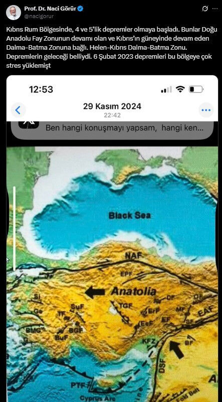 Jeolog Prof. Dr. Naci Görür, sosyal medya üzerinden yaptığı açıklamada, bölgedeki sismik aktivitenin sürpriz olmadığını vurgulayarak şu ifadeleri kullandı: