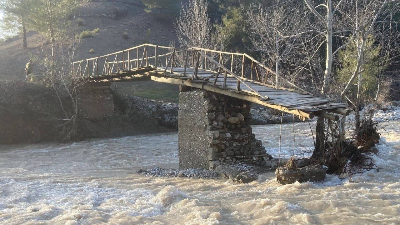 Kahramanmaraş’ın Dulkadiroğlu ilçesi Bertiz çayında, aşırı yağışlar nedeniyle bir tahta köprü yıkıldı. Olay, bölgedeki yoğun yağışların ardından meydana geldi. Yağışların etkisiyle su seviyesinin yükselmesi sonucu tahta köprü yıkılarak kullanılmaz hale geldi.