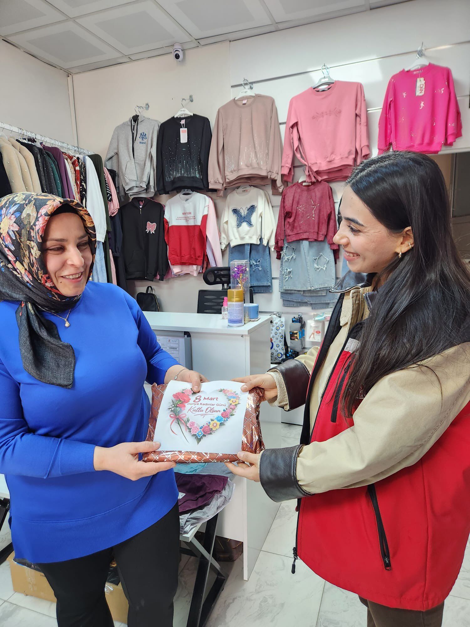 8 Mart Dünya Kadınlar Günü kapsamında gerçekleştirilen ziyaretlerde kadın esnaflara küçük hediyeler takdim edildi. Günün anlam ve önemine dikkat çekilen programda kadın girişimcilere başarı dilekleri iletildi.