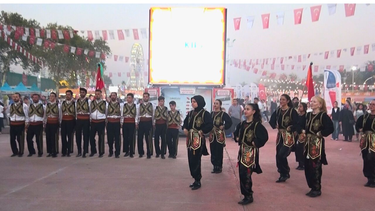 Kahramanmaraş Büyükşehir Belediyesi Halk Oyunları Topluluğu, geleneksel Ağustos Fuarı'na damgasını vurdu. 35 kişilik coşkulu ekip, sergilediği birbirinden renkli ve enerjik yöresel halk oyunlarıyla izleyenlere unutulmaz anlar yaşattı. Sahneye çıktıkları andan itibaren izleyicilerin yoğun ilgisiyle karşılaşan topluluk, sergilediği senkronize ve etkileyici performansla tam not almayı başardı.