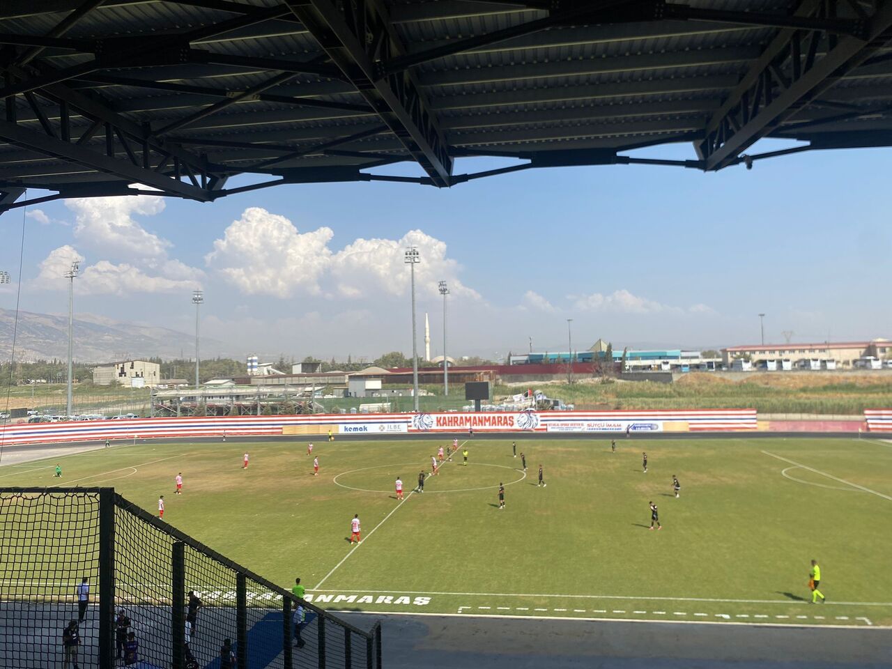 Maçın ilk dakikalarından itibaren her iki ekip de kontrollü bir oyun sergilerken, Kahramanmaraş İstiklalspor 5. dakikada Tarık Yalçın’ın gördüğü sarı kartla gerilimli anlar yaşadı. 25. dakikada Ramazan Kaplan, ceza sahası dışından şık bir şut denedi ancak kaleci topu iki hamlede kontrol ederek gole izin vermedi. 35. dakikada Tarık Yalçın’ın yakın mesafeden yaptığı vuruş direkten döndü ve takım net bir gol fırsatını değerlendiremedi.