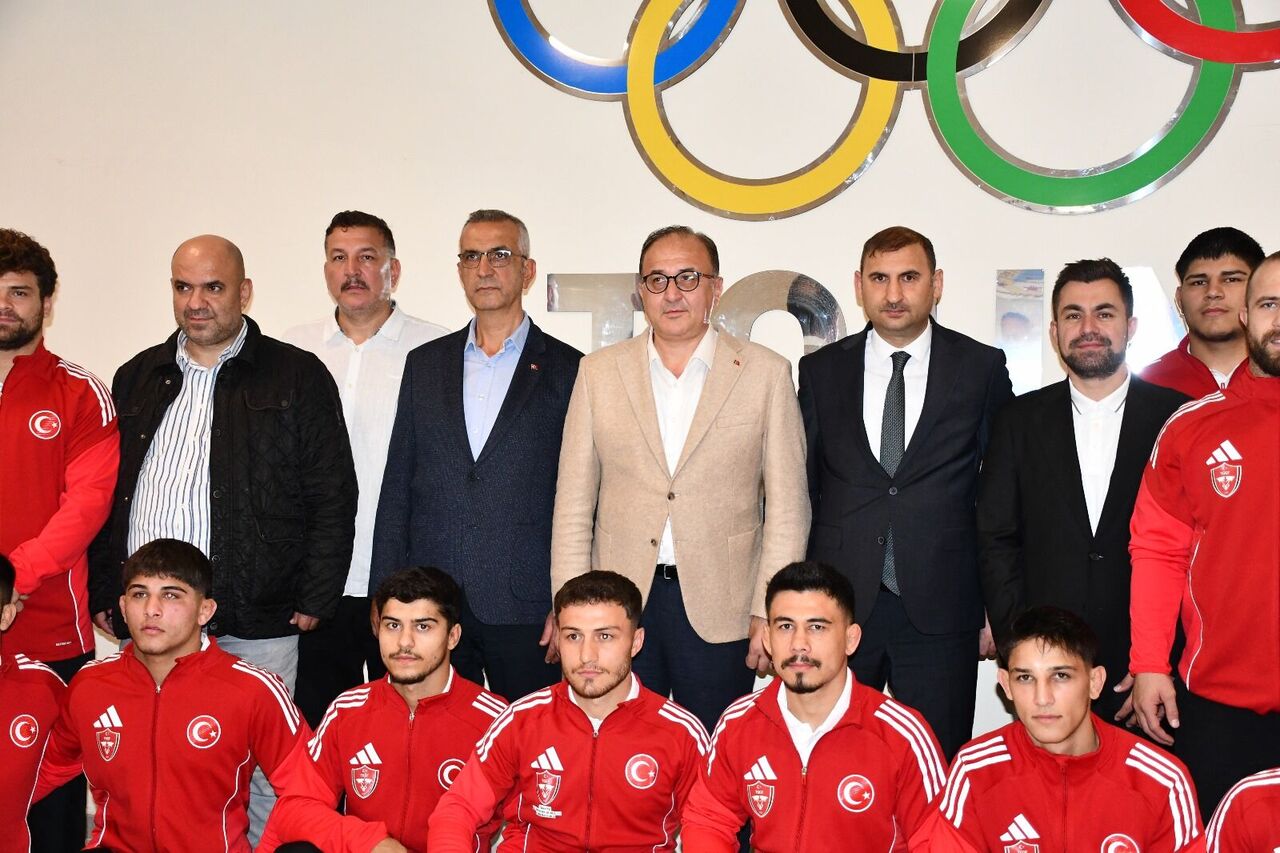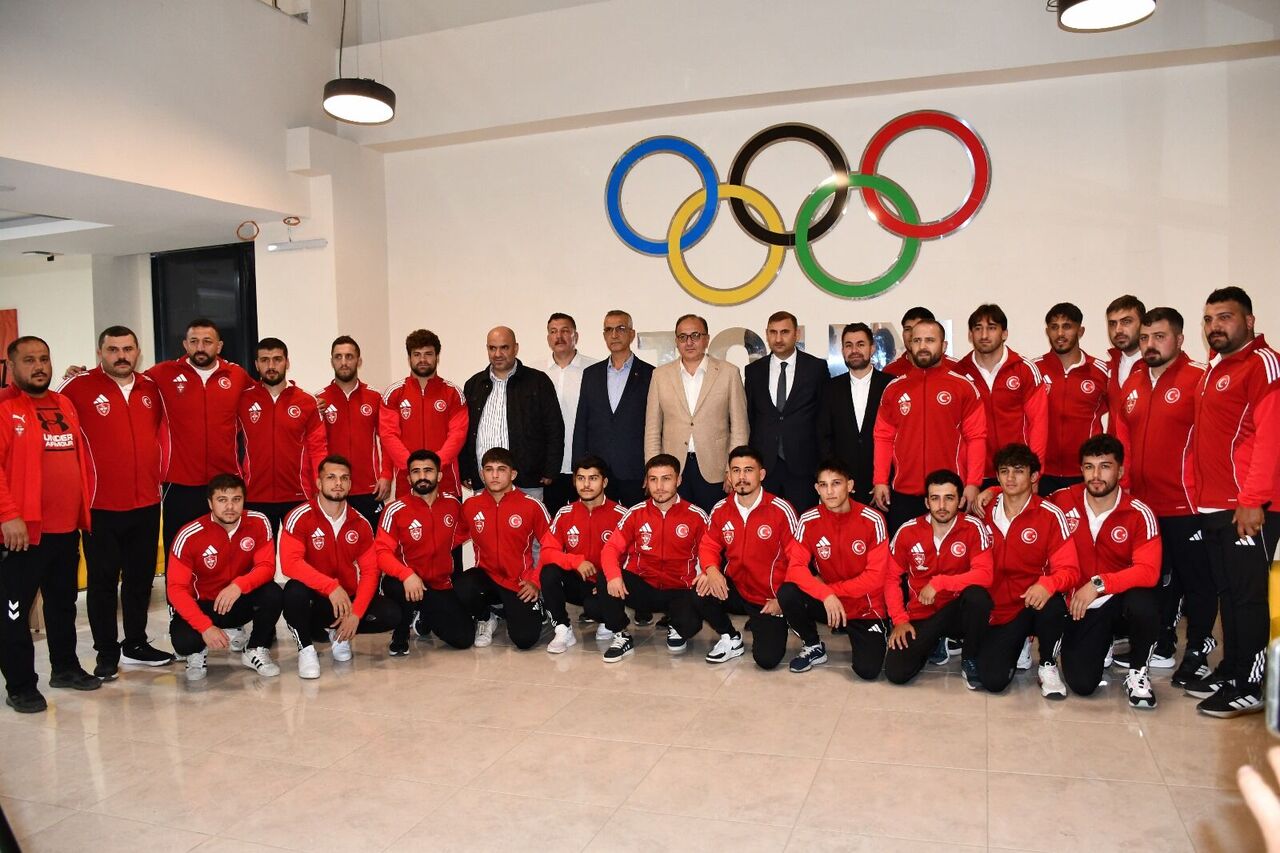 Kahramanmaraş, 26 Ekim 2025’te ilk kez ev sahipliği yapacağı Karakucak Güreşi Dünya Şampiyonası için gün sayıyor. Dev organizasyon öncesi Türkiye Geleneksel Güreşler Federasyonu (TGGF) Başkan Vekili Şahin Hopur, milli takım kampını ziyaret etti. Hopur’a ziyarette TGGF Asbaşkanı Mehmet Emin Bay, Gençlik ve Spor İl Müdürü Yasin Özdemir, Büyükşehir Belediyesi Meclis Başkan Vekili Şems Sezal ve TGGF Yönetim Kurulu Üyesi Hayrullah Boyalı eşlik etti.