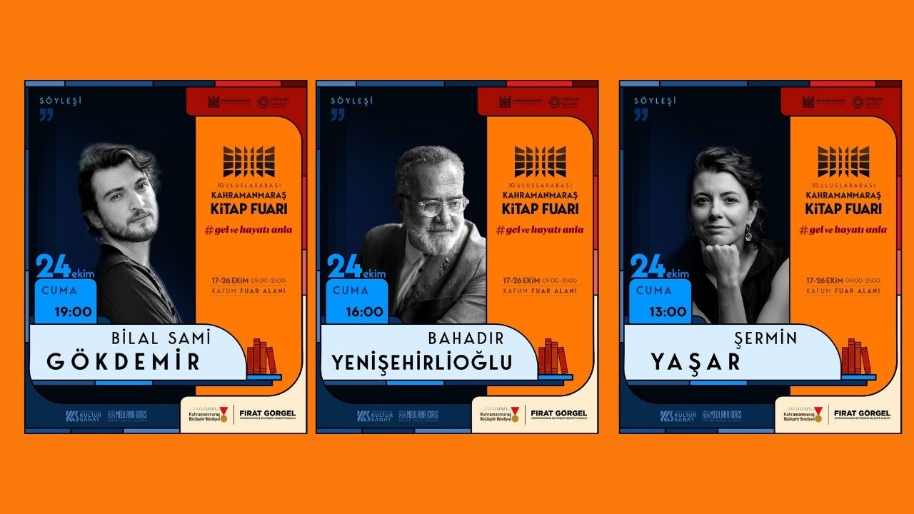 Kahramanmaraş Büyükşehir Belediyesi tarafından düzenlenen 10. Uluslararası Kahramanmaraş Kitap Fuarı, kültür ve edebiyatseverler için unutulmaz anlara ev sahipliği yapmaya devam ediyor. 24 Ekim Cuma günü fuarda; yazar Şermin Yaşar, AK Parti Grup Başkanvekili ve yazar Bahadır Yenişehirlioğlu ile gazeteci-yazar Bilal Sami Gökdemir’in katılacağı üç ayrı söyleşi düzenlenecek. Edebiyat, bireysel gelişim ve toplumsal konuların ele alınacağı bu programlar, fuar ziyaretçilerine farklı alanlarda derinlikli içerikler sunacak.