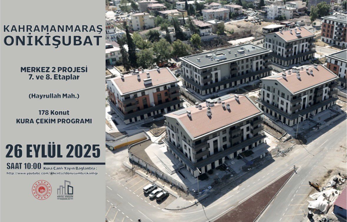 Kahramanmaraş’ta kentsel dönüşüm kapsamında hak sahiplerinin belirlenmesi için kura çekimi gerçekleştirilecek. Onikişubat ilçesi Hayrullah Mahallesi Merkez 2 Projesi kapsamında, 26 Eylül 2025 Cuma günü hak sahipleri noter huzurunda belirlenecek.