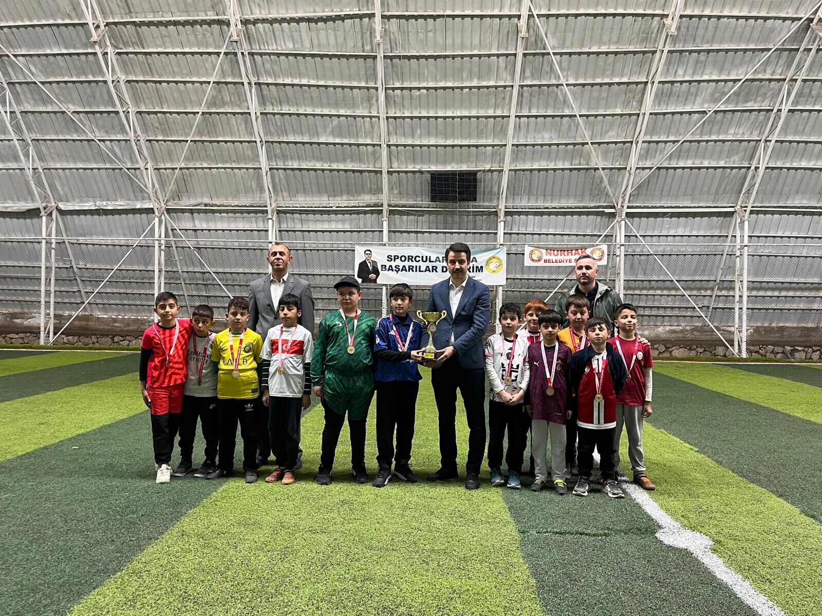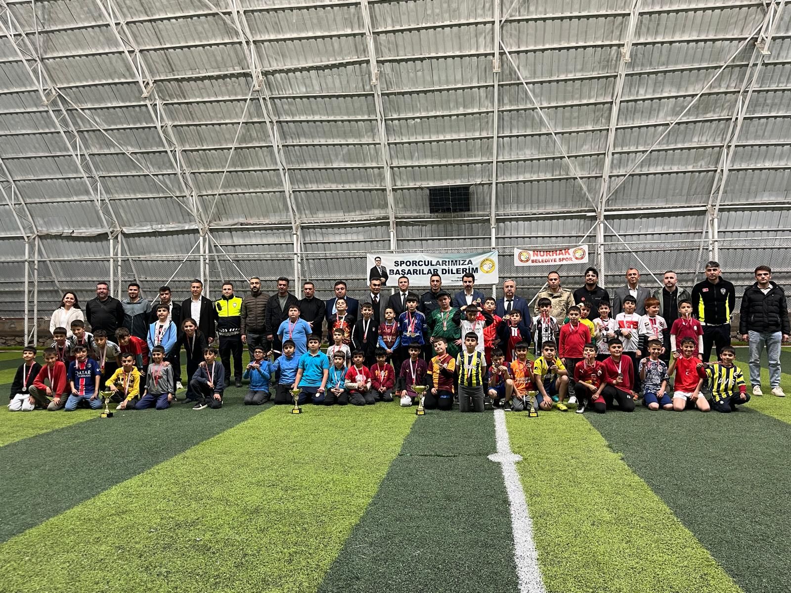 Kıran kırana geçen maçların ardından düzenlenen törenle, dereceye giren takımlara ve oyunculara ödülleri takdim edildi. Turnuvanın şampiyonluk kupasını havaya kaldıran çocukların mutluluğu gözlerinden okunurken, turnuvaya katılan tüm çocuklara günün anısına katılım madalyaları verildi. Nurhak Kaymakamlığı ve Belediye yetkililerinin de katıldığı ödül töreninde, "Geleceğimizin teminatı olan yavrularımızın her zaman yanındayız" mesajı verildi. 23 Nisan ruhunun sporla birleştiği Nurhak’ta, minik kramponlar bu anlamlı günü hafızalarına kazıdı.
