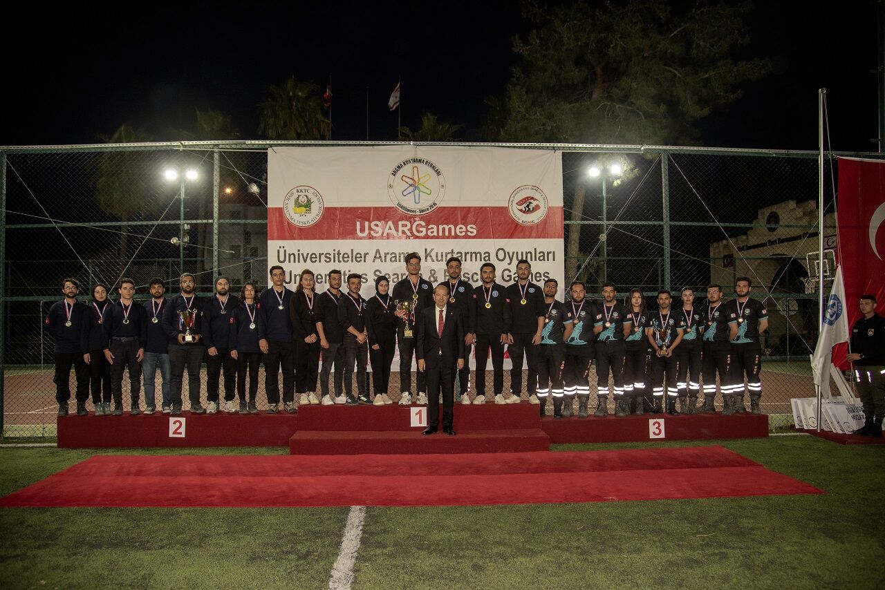 Kuzey Kıbrıs Türk Cumhuriyeti'nde (KKTC) düzenlenen Üniversiteler Arama Kurtarma Oyunları USARGames 2025’te birincilik kürsüsüne çıkan KİÜ’lü öğrenciler, ödüllerini Cumhurbaşkanı Ersin Tatar’ın elinden aldı.
