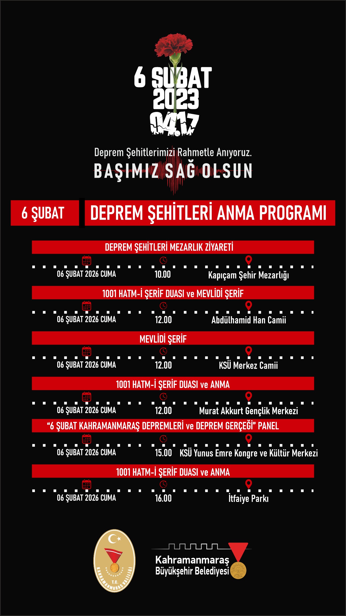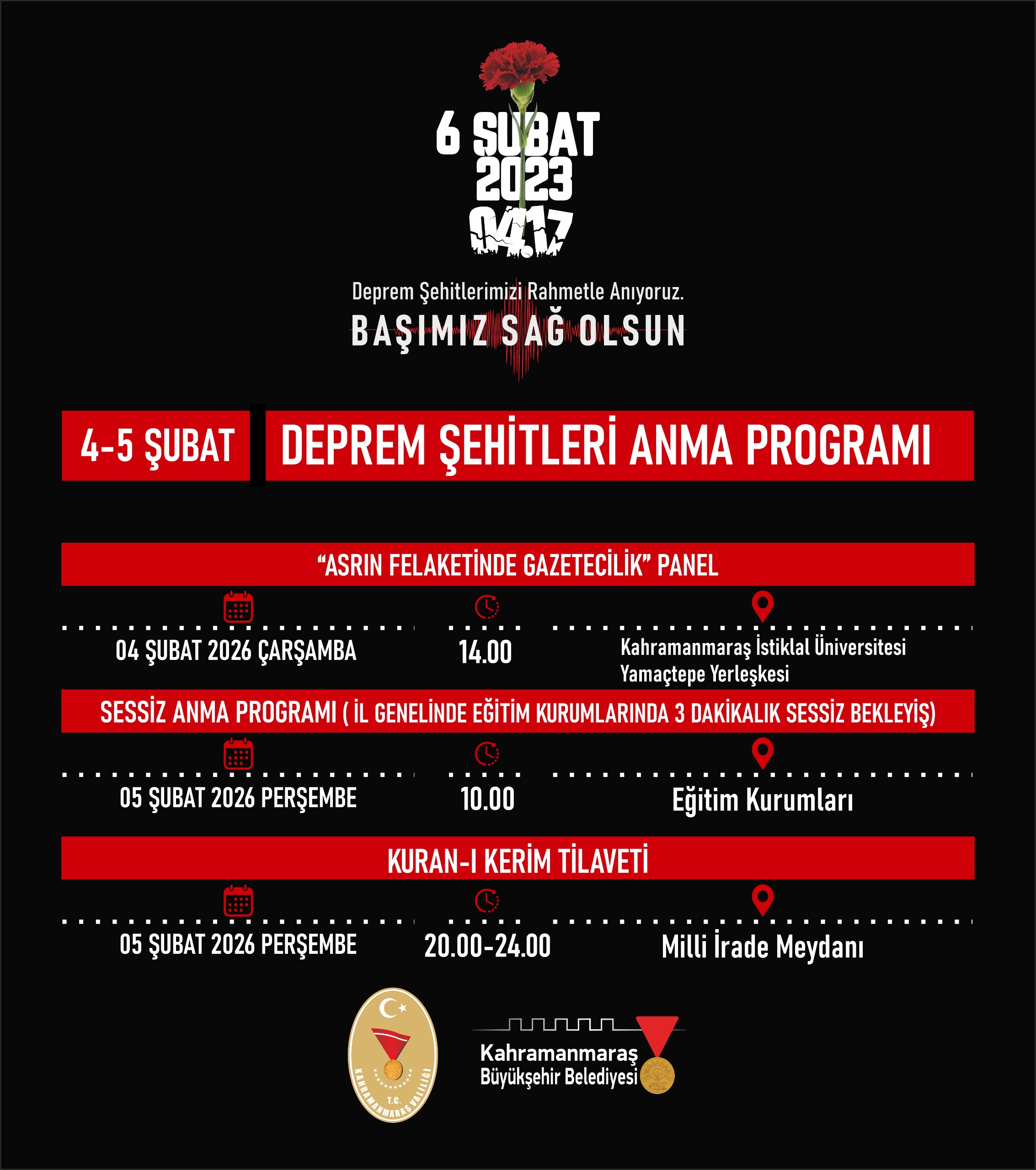 Aynı gün saat 15.00’te, KSÜ Yunus Emre Kongre ve Kültür Merkezi'nde "6 Şubat Kahramanmaraş Depremleri ve Deprem Gerçeği" başlıklı bir panel düzenlenecek. Panelde, depremin etkileri, şehirleşme politikaları, afet yönetimi ve yapı güvenliği gibi kritik başlıklar ele alınacak.