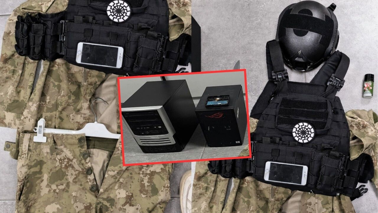 Güvenlik güçleri tarafından M.A.’nın evinde yapılan aramalarda, bir gencin evinde bulunması olağan dışı olan çok sayıda askeri malzeme ele geçirildi. Ele geçirilenler arasında; askeri kamuflaj, hücum yeleği, kompozit başlık (kask), biber gazı ve kesici aletler yer alıyor. Bu malzemelerin, şüphelinin paylaşımlarıyla olan bağlantısı ve herhangi bir eylem hazırlığı içerisinde olup olmadığı titizlikle inceleniyor.