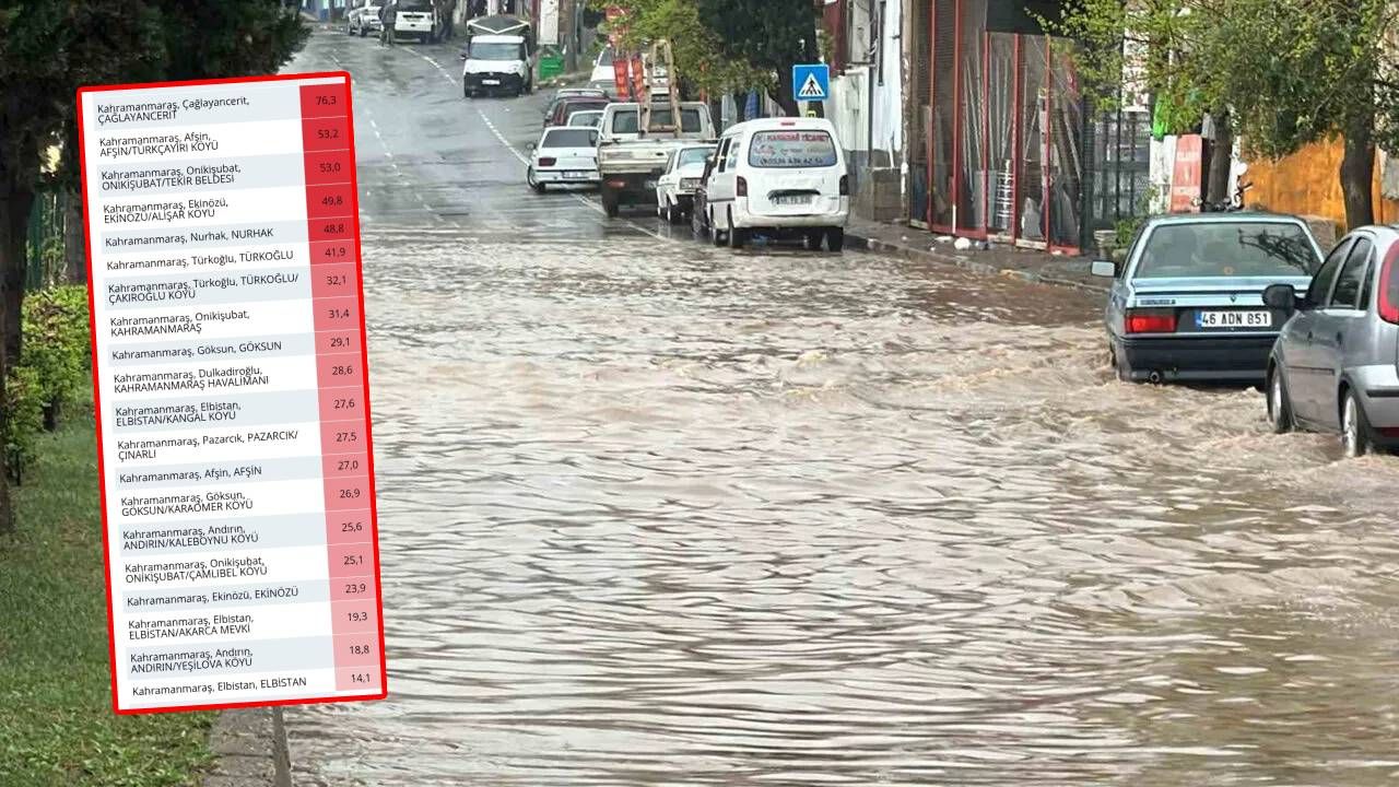 Sağanak yağışın etkili olduğu ilçelerde resmi ölçüm değerleri şu şekilde kaydedildi: