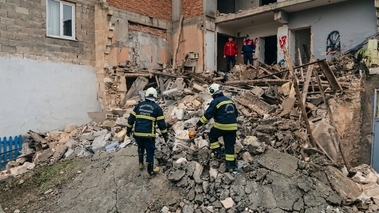 Gaziantep’in Nizip ilçesinde öğle saatlerinde meydana gelen bina çökmesi, mahalle sakinlerine büyük korku yaşattı. Nizip ilçesi Pazar Cami Çay Sokak’ta bulunan ve oldukça eski olduğu öğrenilen iki katlı kerpiç bina, bölgede etkisini sürdüren şiddetli sağanak yağışın ardından taşıyıcı kolonlarının yumuşaması sonucu büyük bir gürültüyle çöktü. Çökme anında çevredeki vatandaşların ihbarı üzerine Gaziantep Büyükşehir Belediyesi İtfaiye ekipleri, polis, UMKE, AFAD ve 112 Acil Sağlık ekipleri saniyeler içinde olay yerine intikal etti.