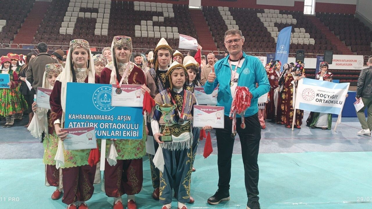 Elazığ’da düzenlenen Ortaokullar Halk Oyunları Yarışması’nda, Kahramanmaraş’ı temsilen katılan Afşin Atatürk Ortaokulu büyük bir başarıya imza attı.