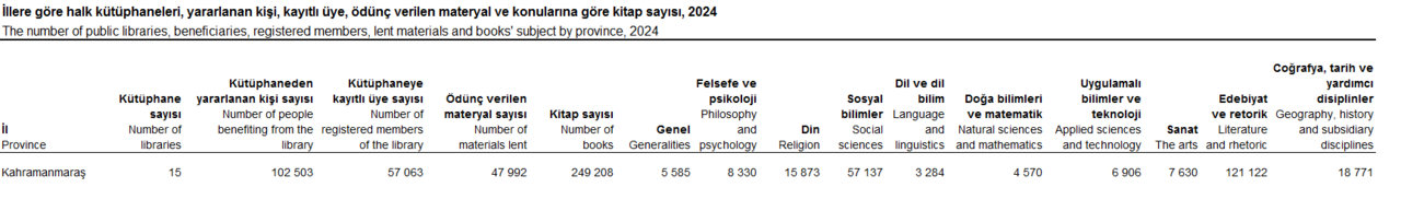 Kahramanmaraş halk kütüphanelerinde 2024 yılında 102.503 kişi kitap ve materyal ödünç alarak bilgiye ulaşırken, kütüphaneye kayıtlı üye sayısı 57.063’e, ödünç verilen materyal sayısı ise 47.992’ye ulaştı.