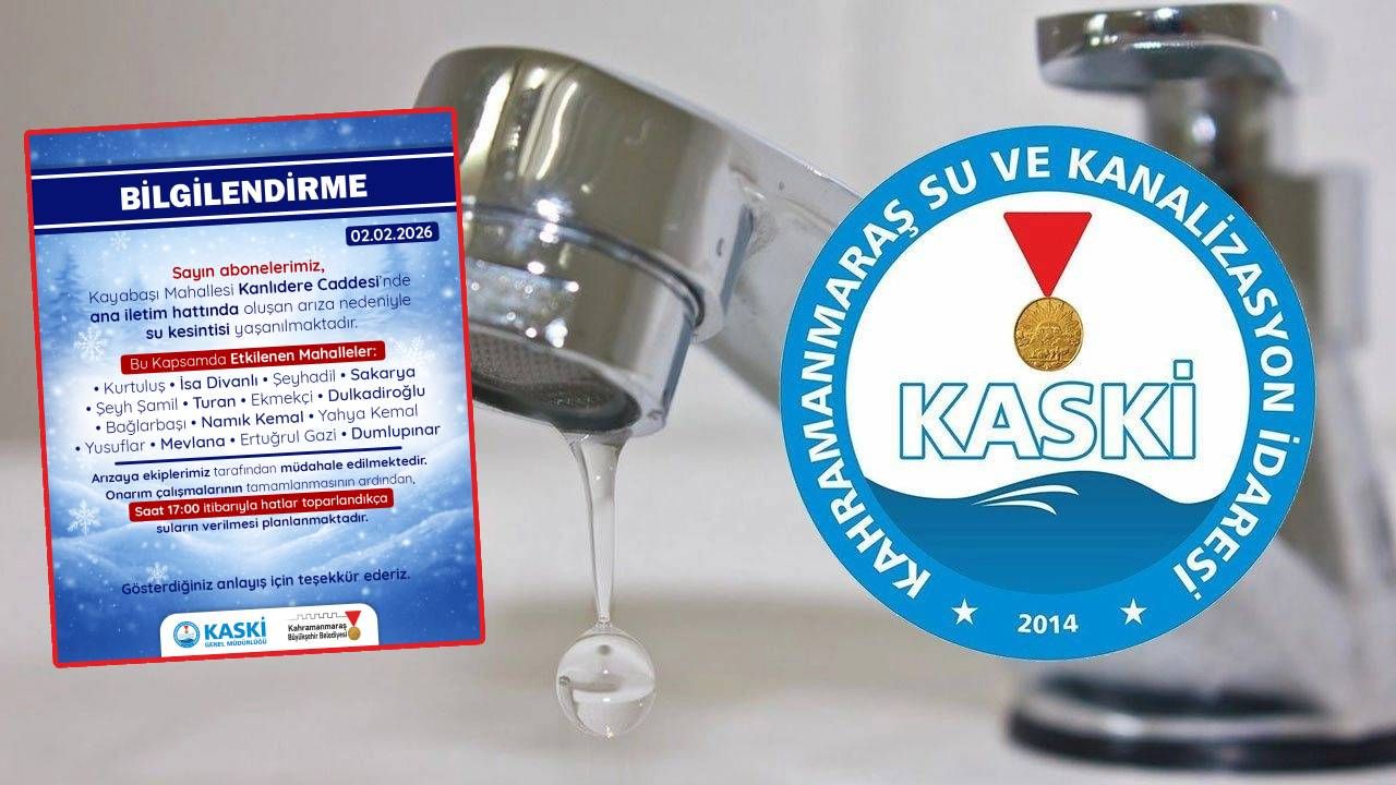 Kahramanmaraş Büyükşehir Belediyesi Su ve Kanalizasyon İdaresi Genel Müdürlüğü (KASKİ), Dulkadiroğlu ilçesine bağlı Kayabaşı Mahallesi’nde bulunan ana içme suyu iletim hattında meydana gelen arıza nedeniyle kent genelinde geniş kapsamlı su kesintisi yaşandığını duyurdu.